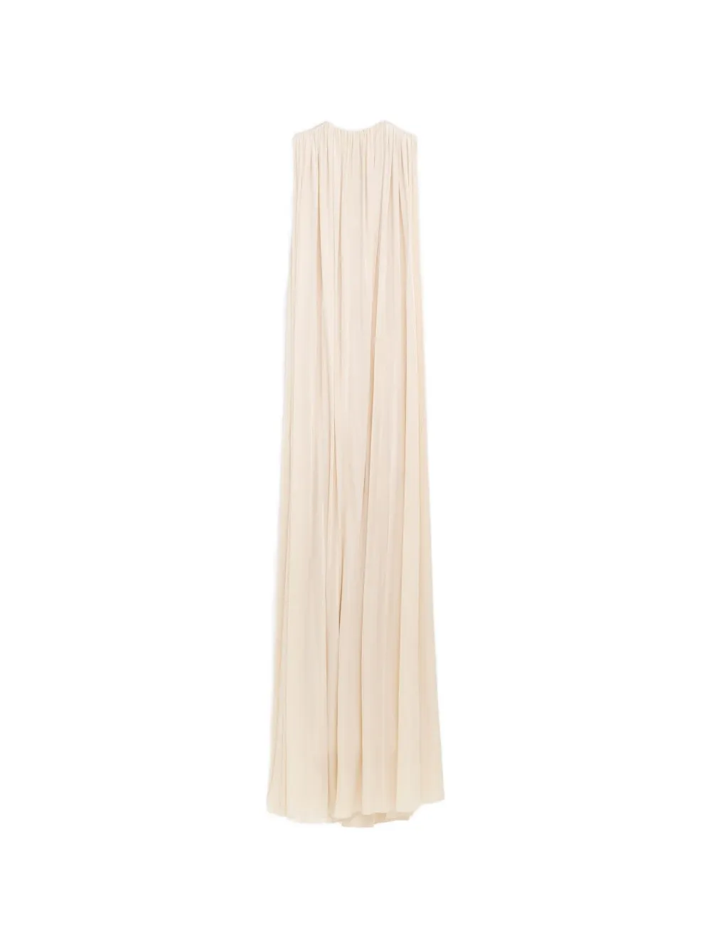 Сливочного цвета, со сборками, скрытая застежка-молния, разрез, без рукавов, свободный крой
