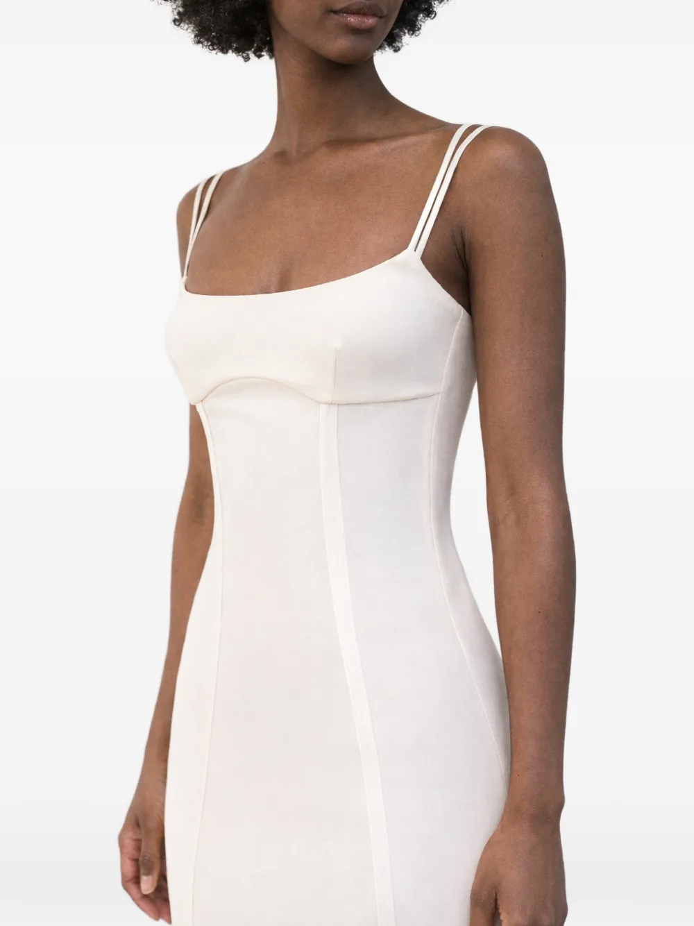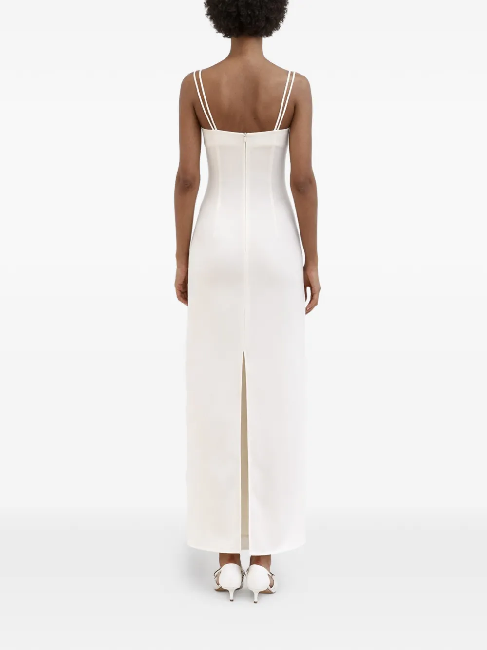 Слоновая кость, тонкие бретельки, разрез сзади, застежка-молния