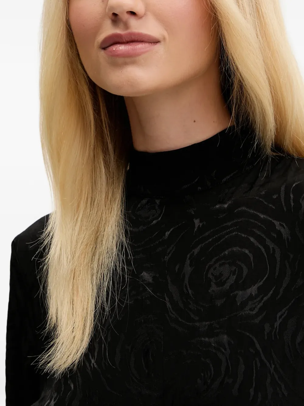 Черный с цветочным узором, длинные рукава, присборенные детали, застежка-молния