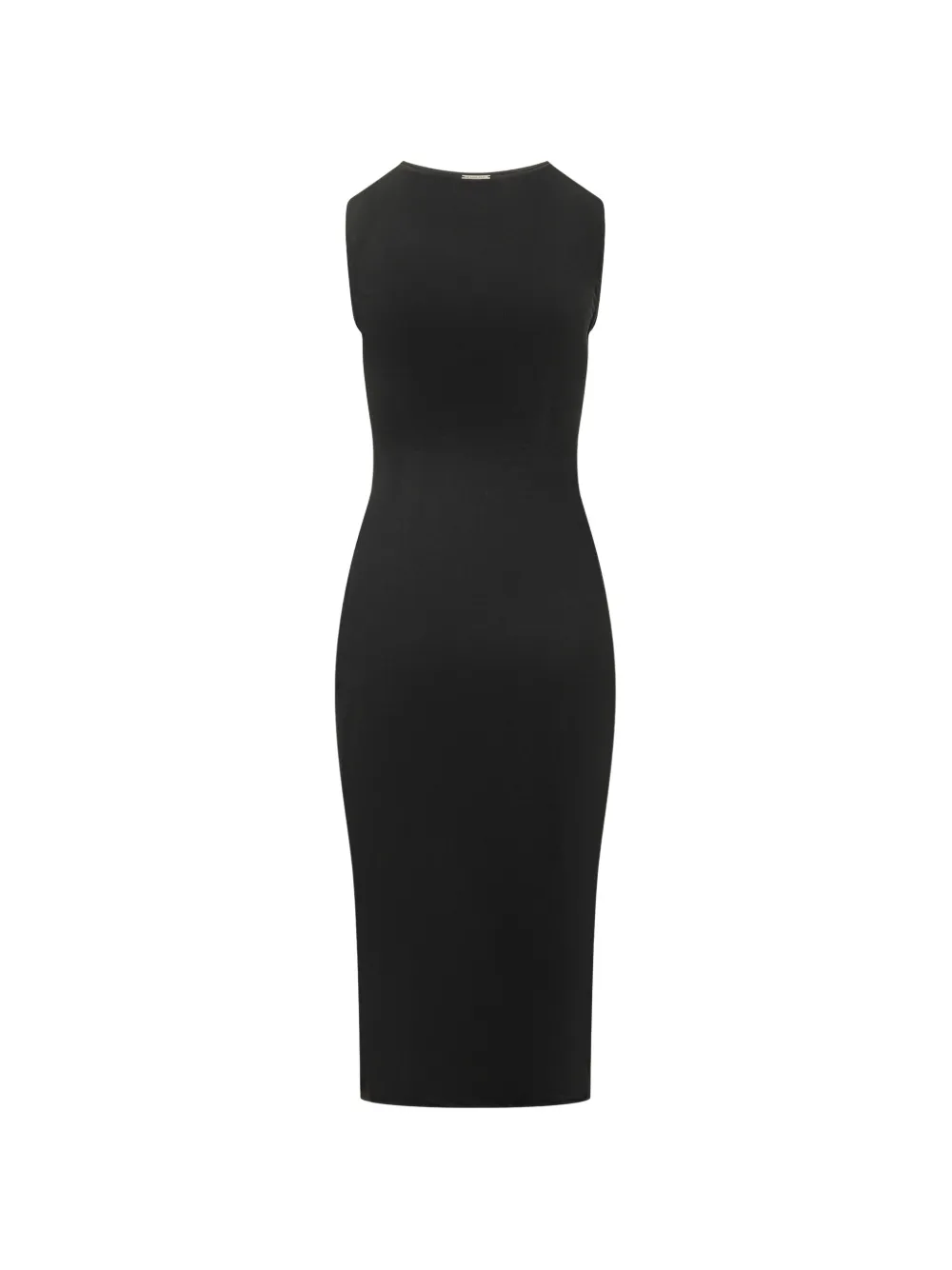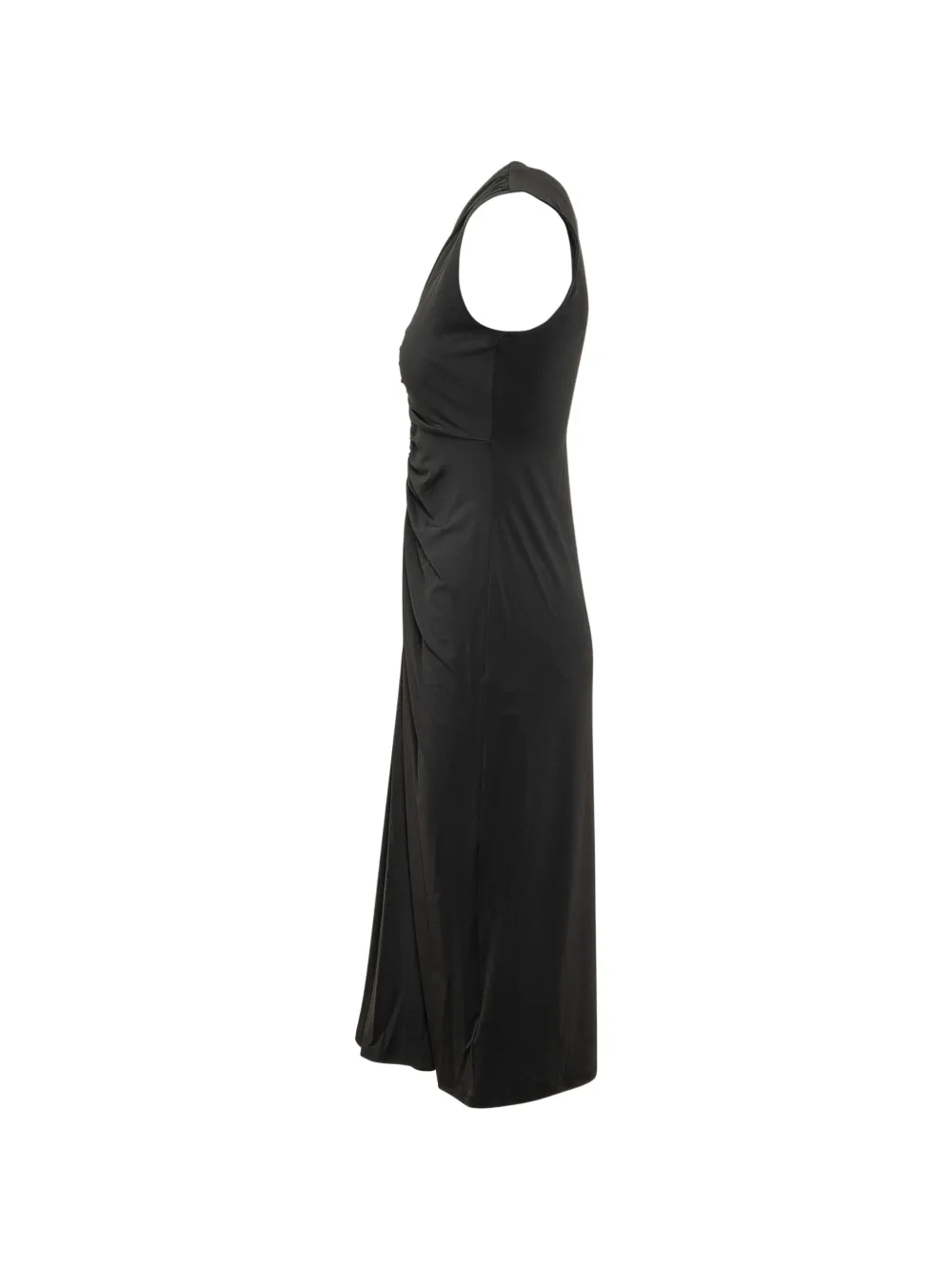 Черное платье миди длины без рукавов с V-образным вырезом, застежкой-молнией и драпировкой