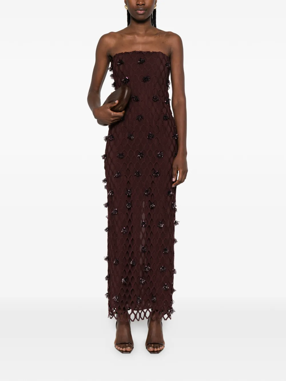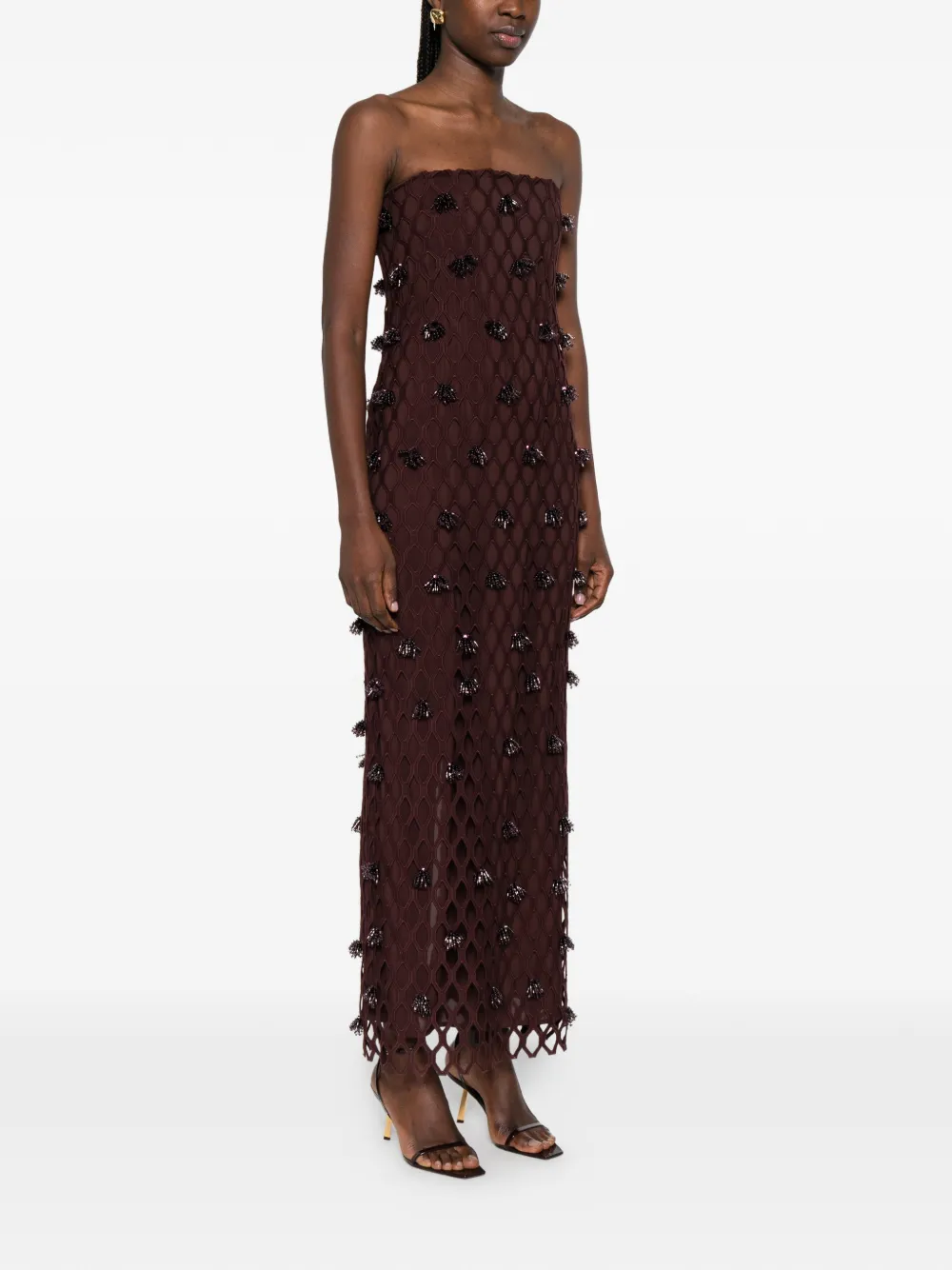 Платье макси с бисером Simkhai, коричневый