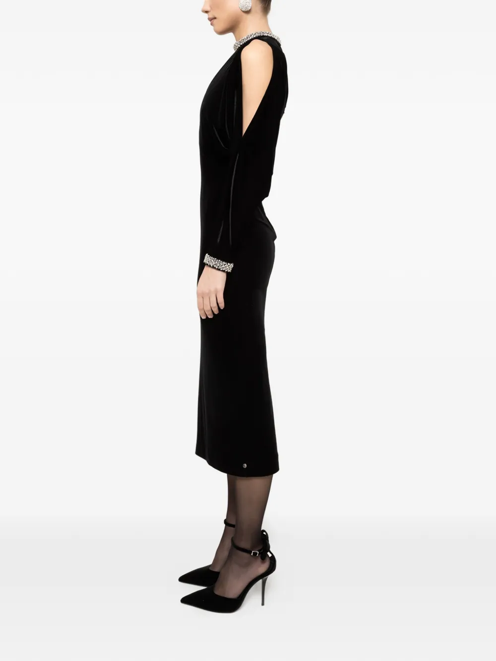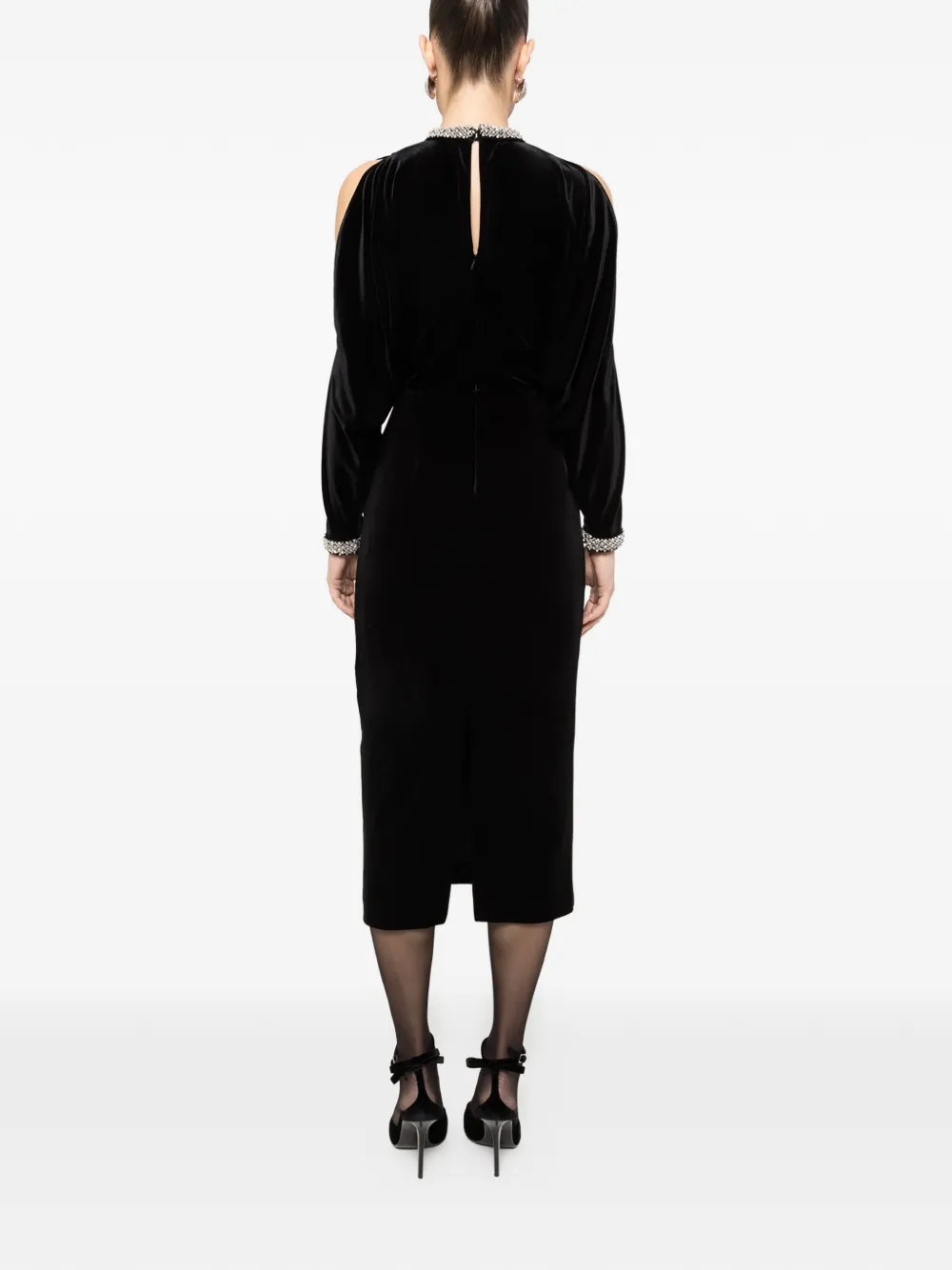 Бархатное миди-платье с кристаллами Nissa, черный