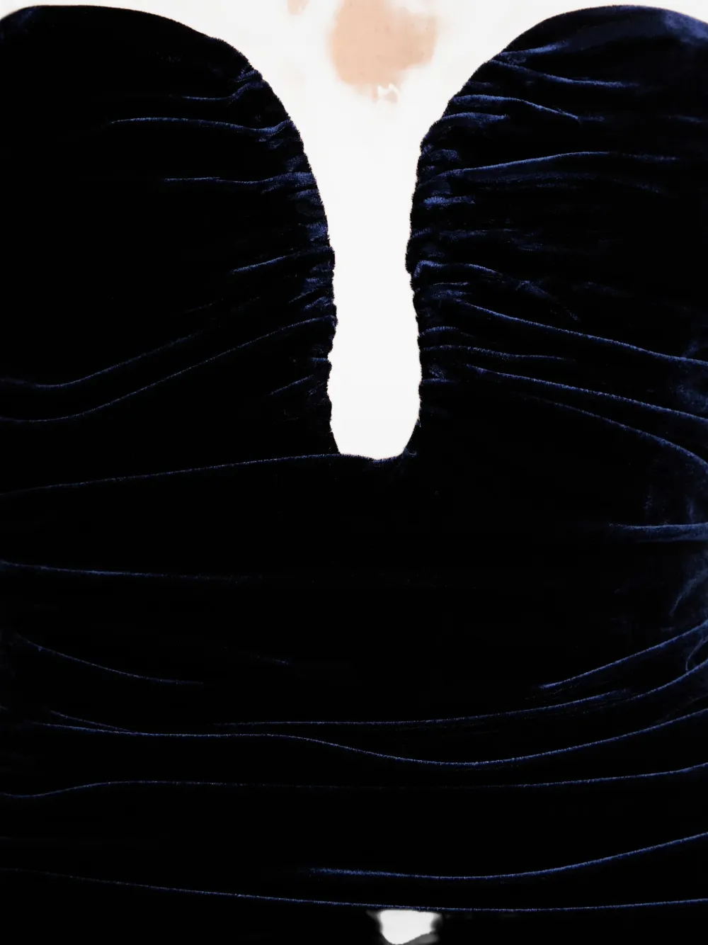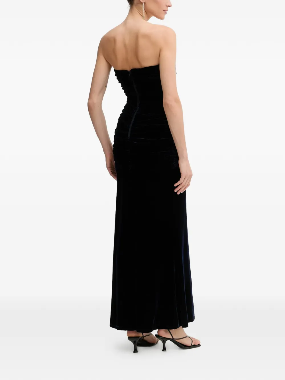Темно-синее платье без бретелек с драпировкой, застежка-молния сзади