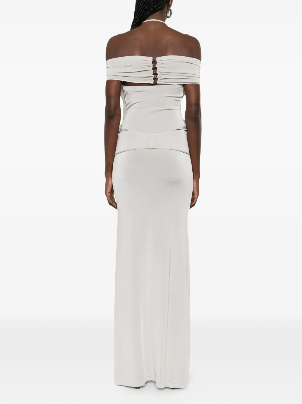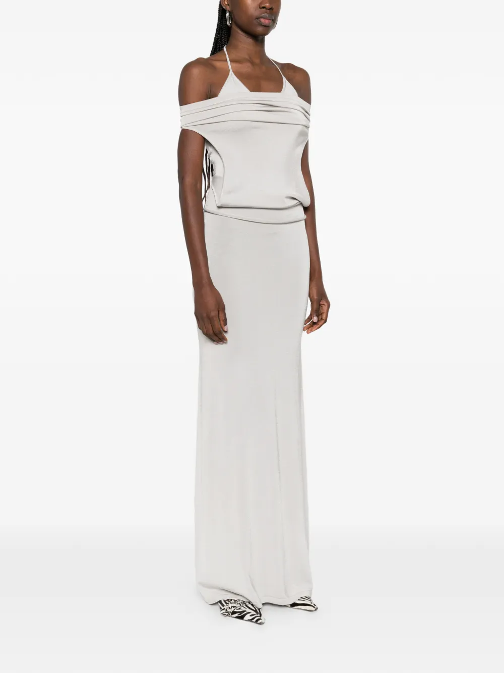 Серый комплект из двух предметов с воротником-хальтер, открытой спиной, приталенный, без рукавов