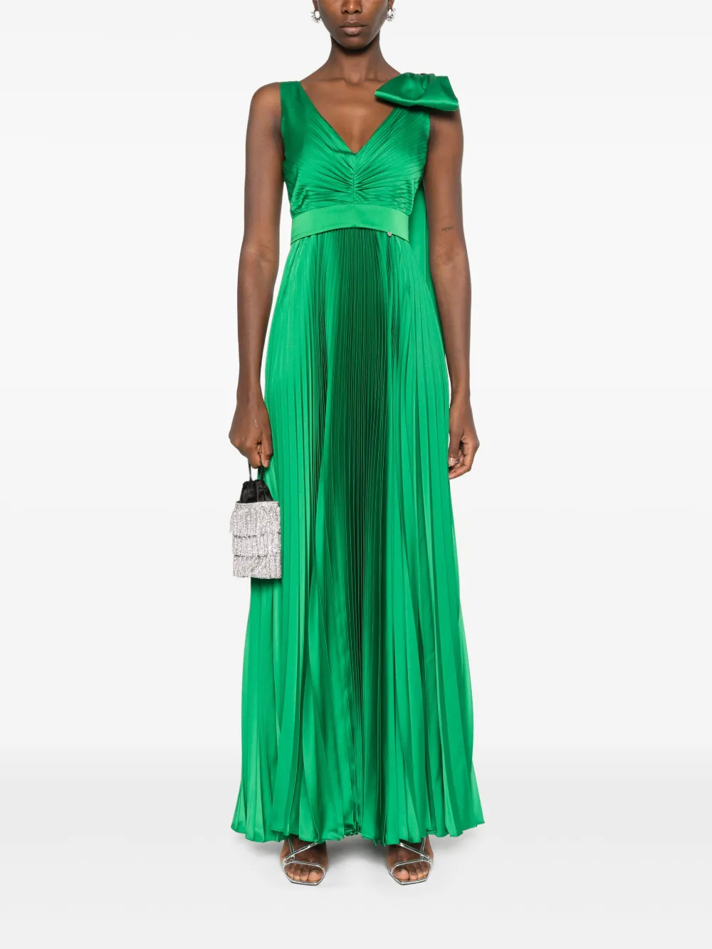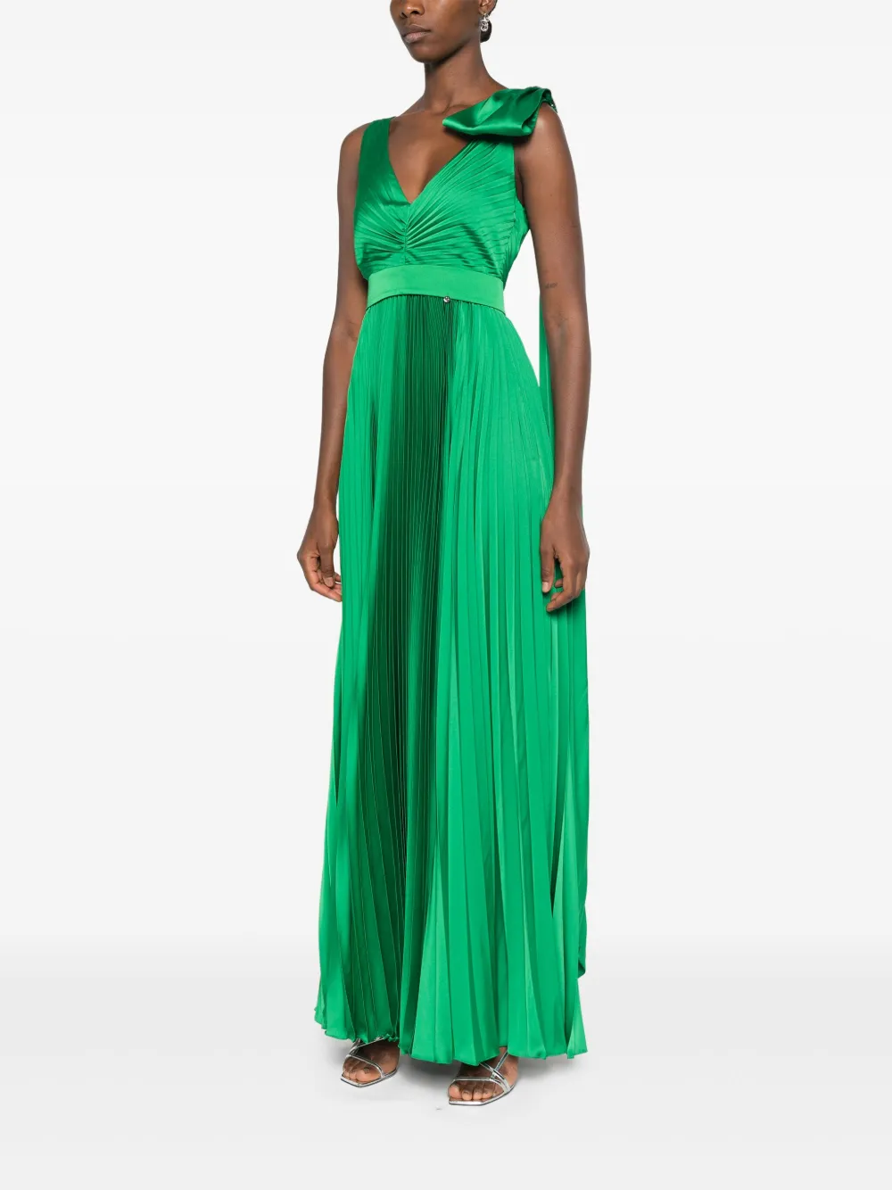 Платье макси со складками и бантом Nissa, зеленый