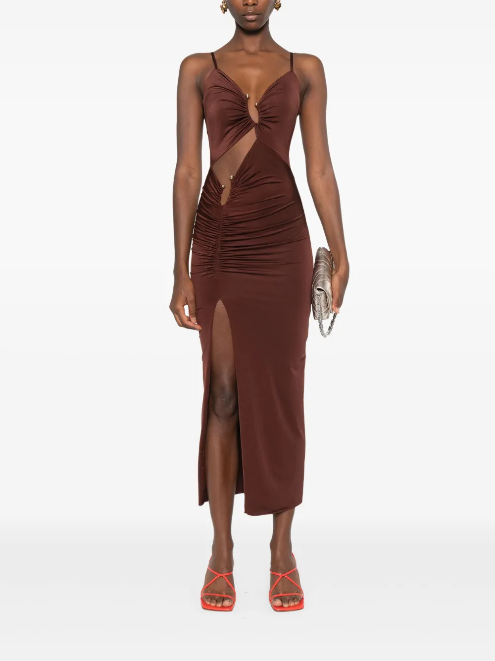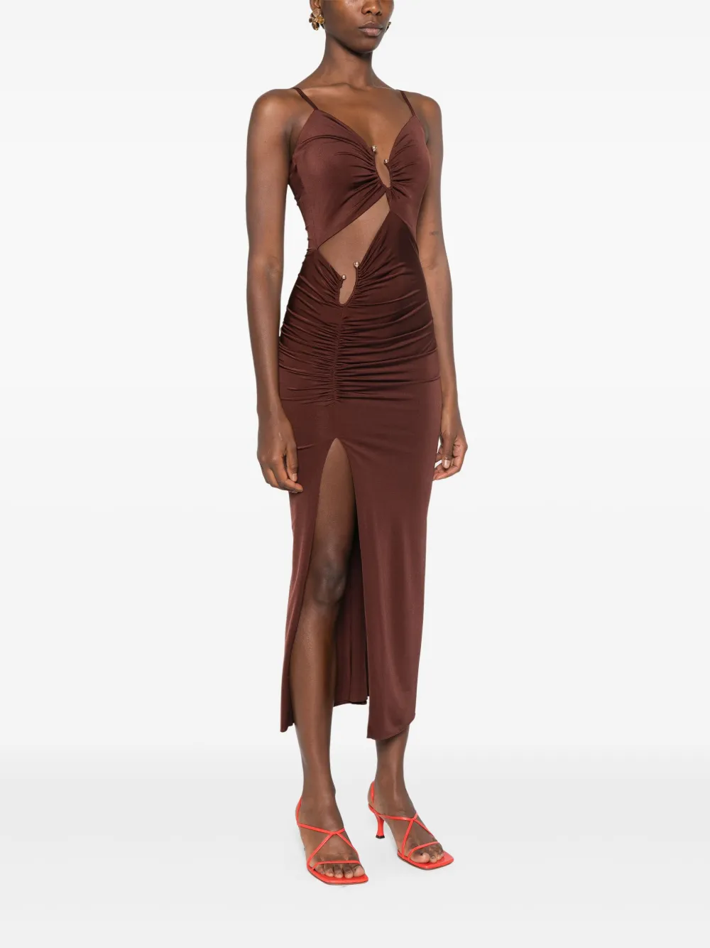 Платье миди с вырезом Nissa, коричневый