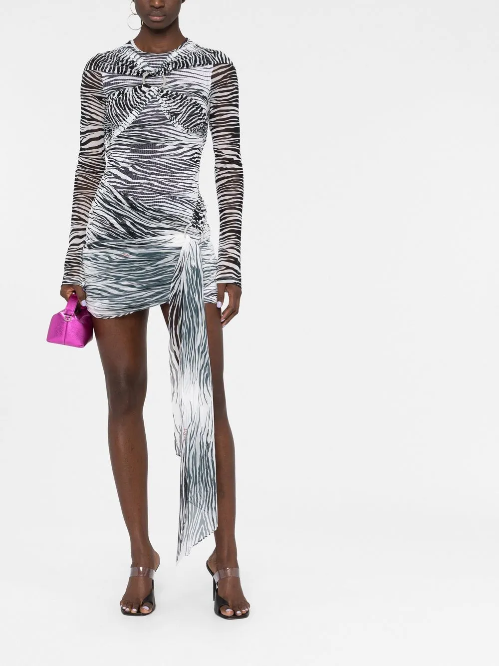 Сетчатое платье мини с тигровым принтом The Attico, белый 85 817₽