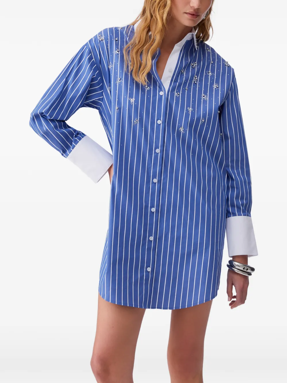 Рубашка в голубую полоску с украшением из драгоценных камней и застежкой на пуговицы