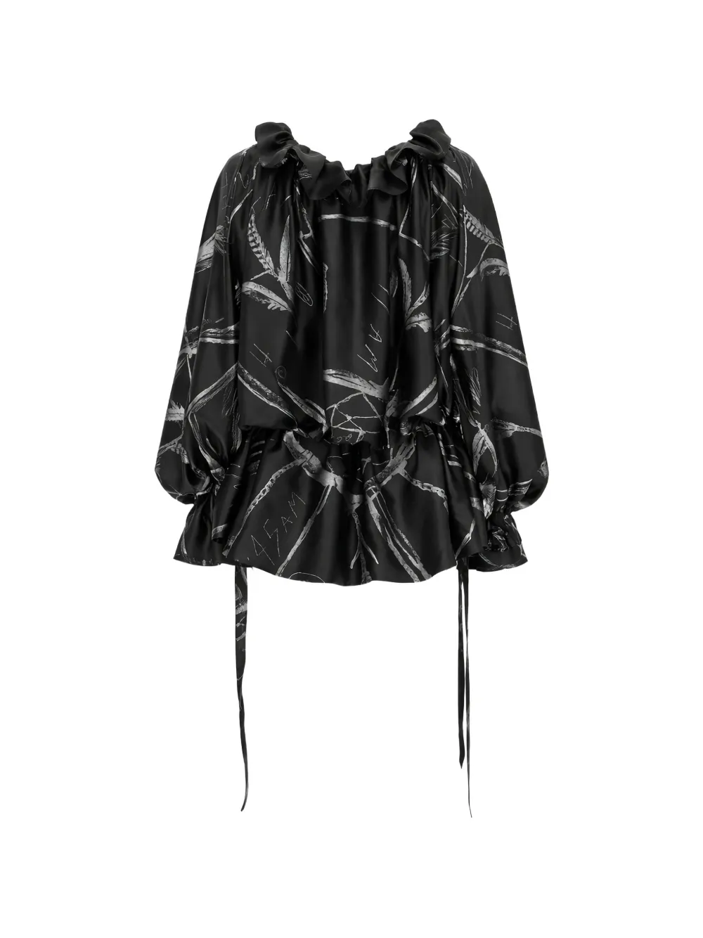 Черно-серая с принтом, с оборками, на завязках, со сборками, длинные рукава