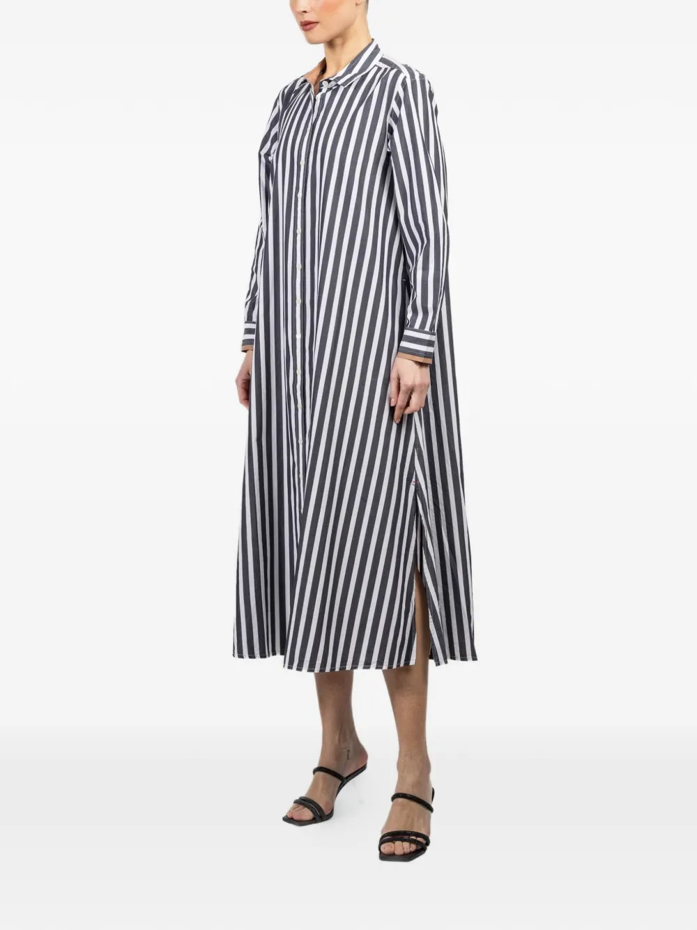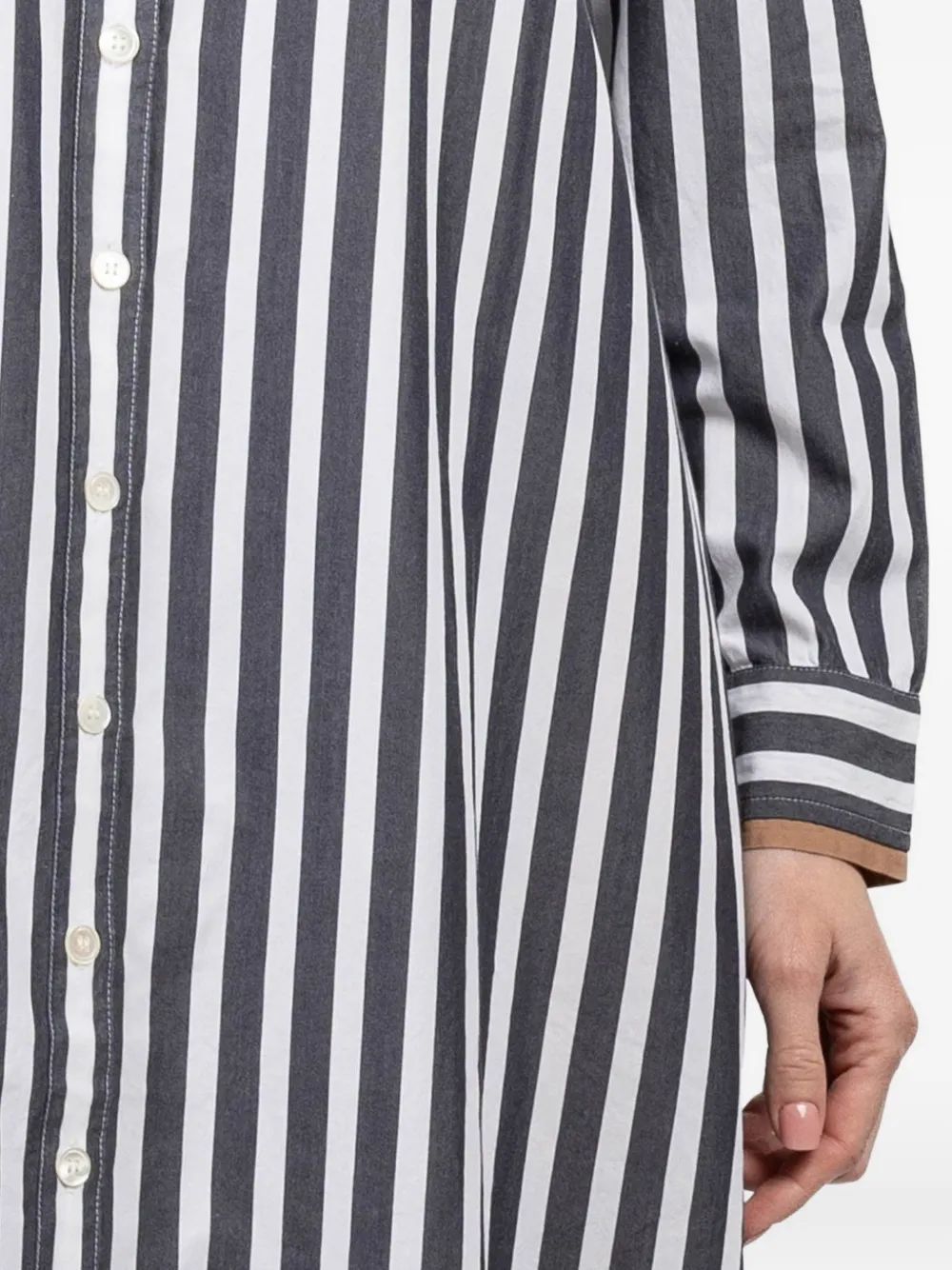Серо-белая рубашка в полоску с застежкой на пуговицы и длинными рукавами