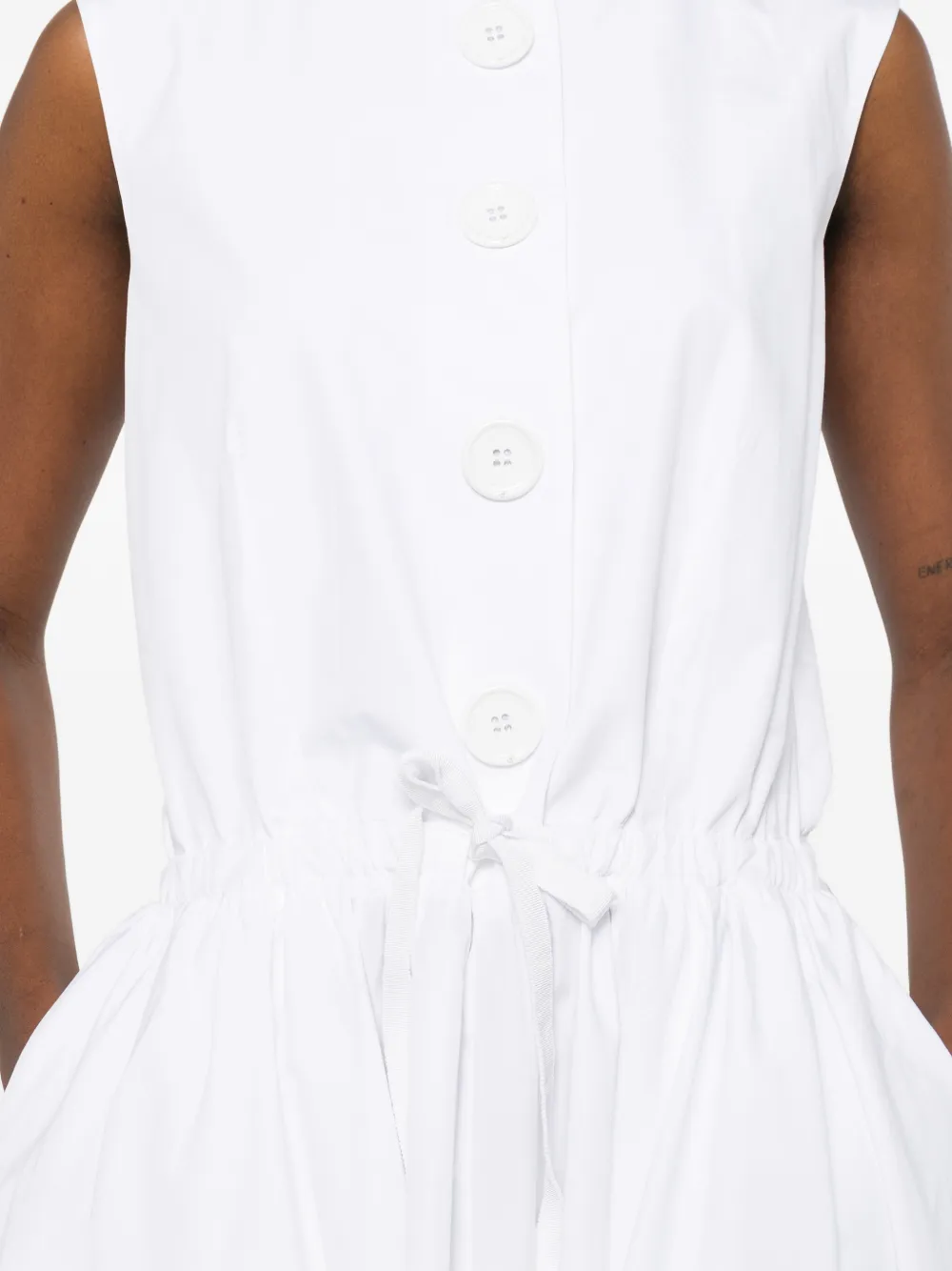 Белая юбка А-силуэта с застежкой на пуговицы, завязками, без рукавов и круглым вырезом