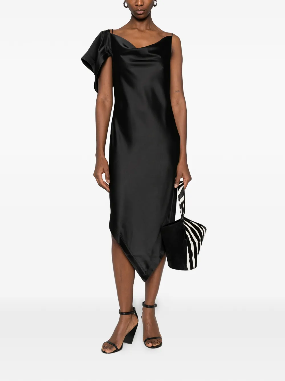 Черный асимметричный дизайн с драпировкой и тонкими бретелями