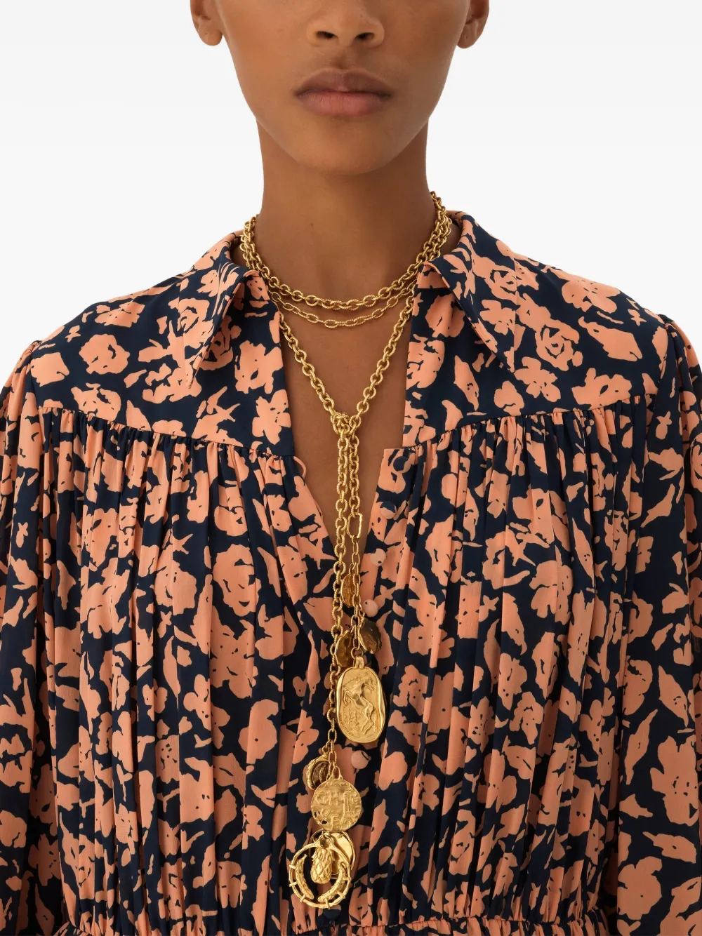 Платье с цветочным принтом и сборками Chloe, синий