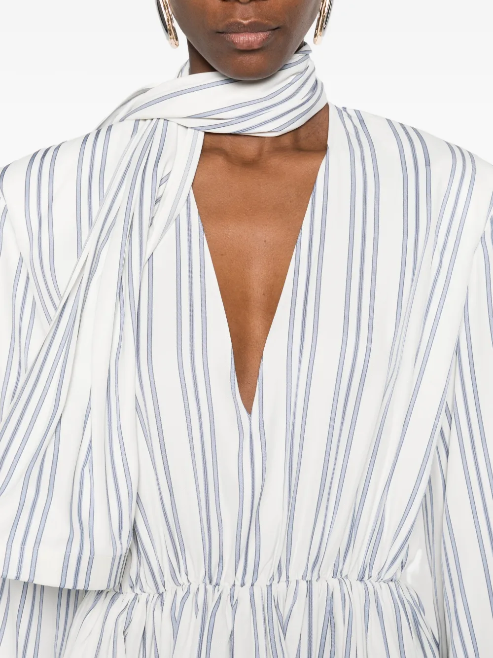 Мини-платье с шарфом и полосатым узором Rowen Rose, белый