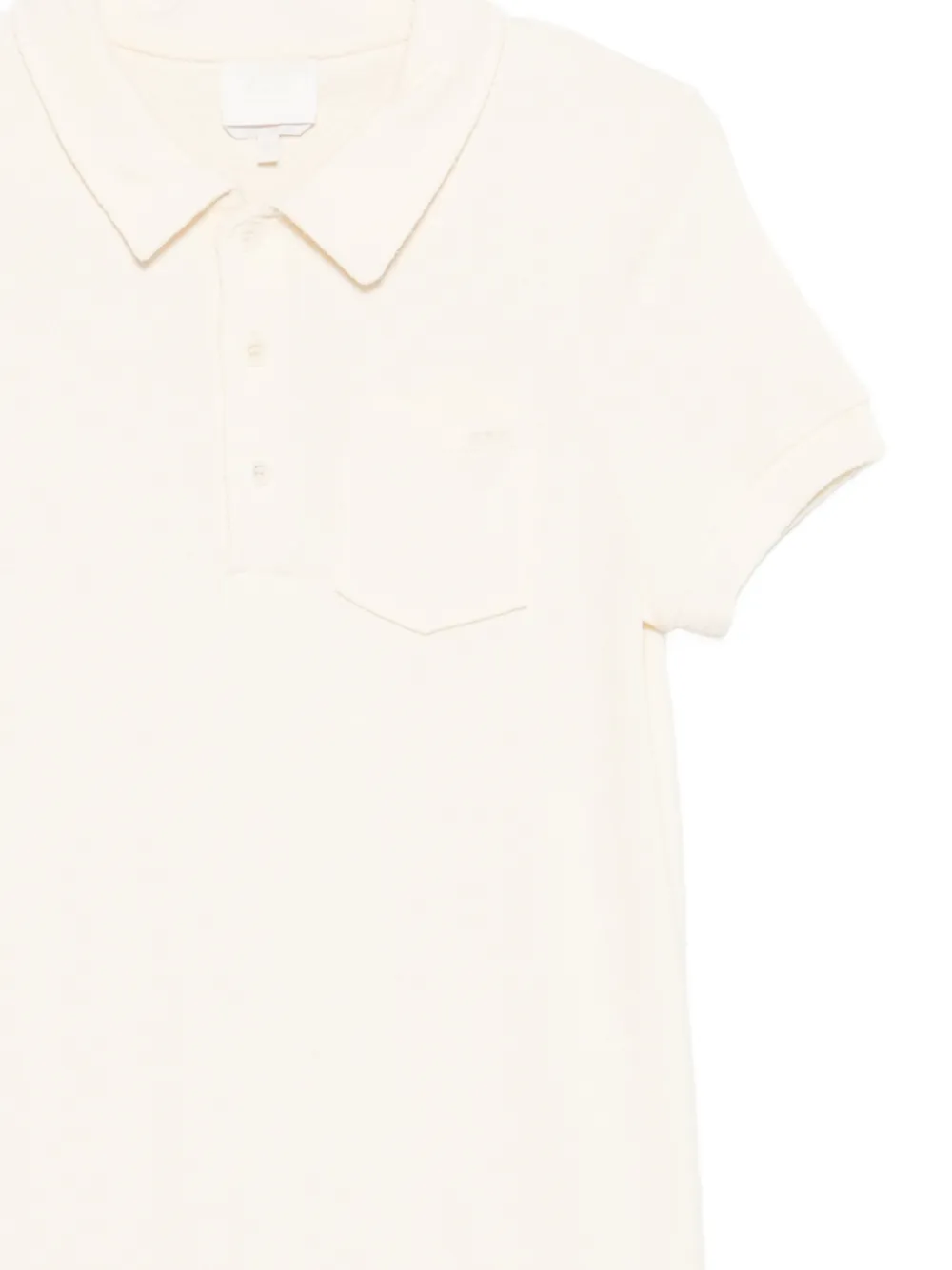 Молочно-белая (айвори) рубашка-поло с воротником, короткими рукавами, нашивным нагрудным карманом, короткой застежкой на пуговицы