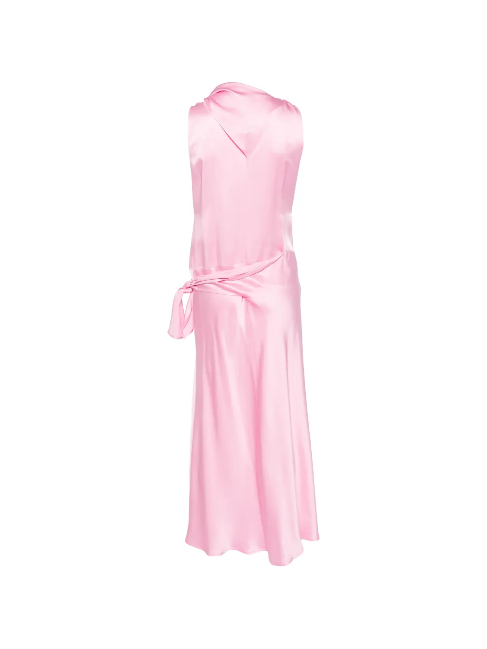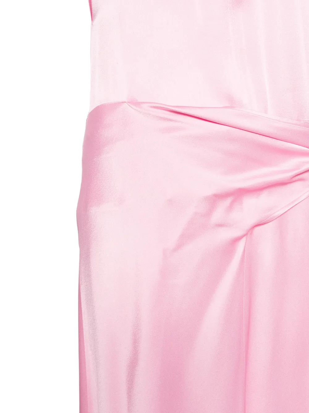 Розовое платье без рукавов с драпировкой и завязкой сбоку