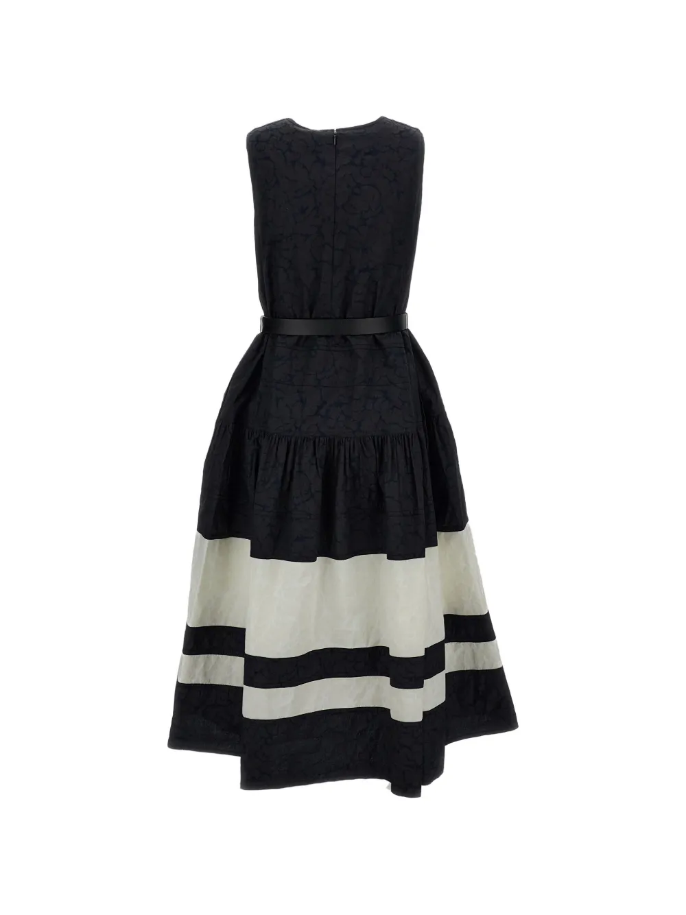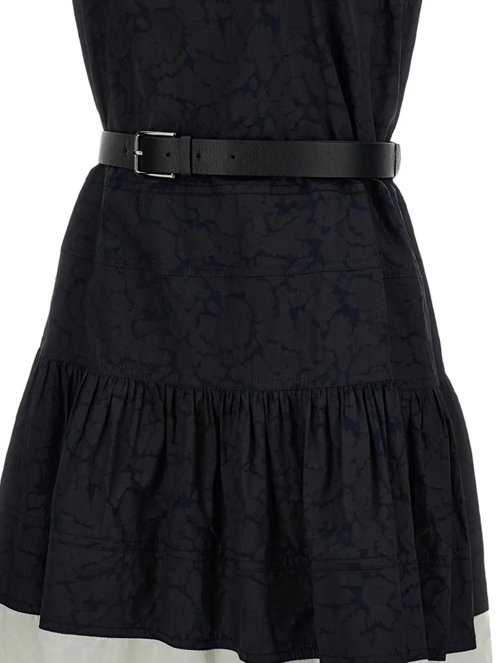 Синяя полосатая безрукавка с круглым вырезом и поясом