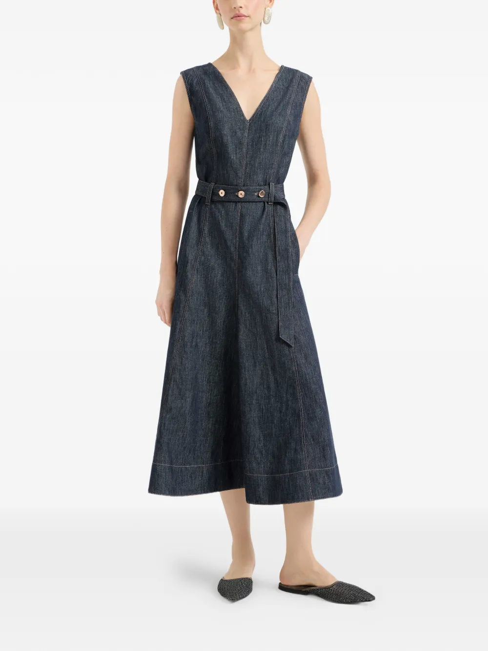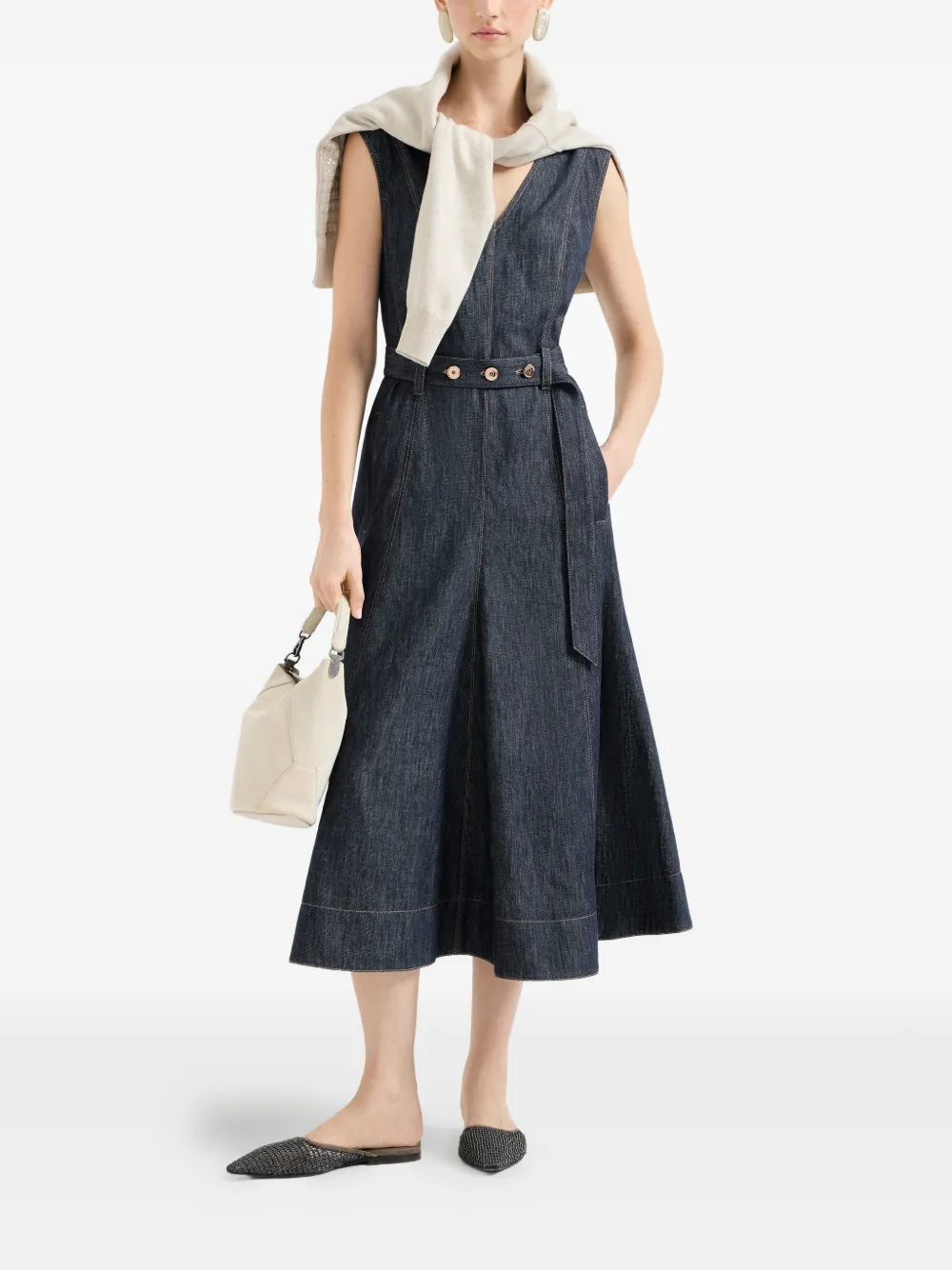 Платье миди без рукавов Brunello Cucinelli, синий