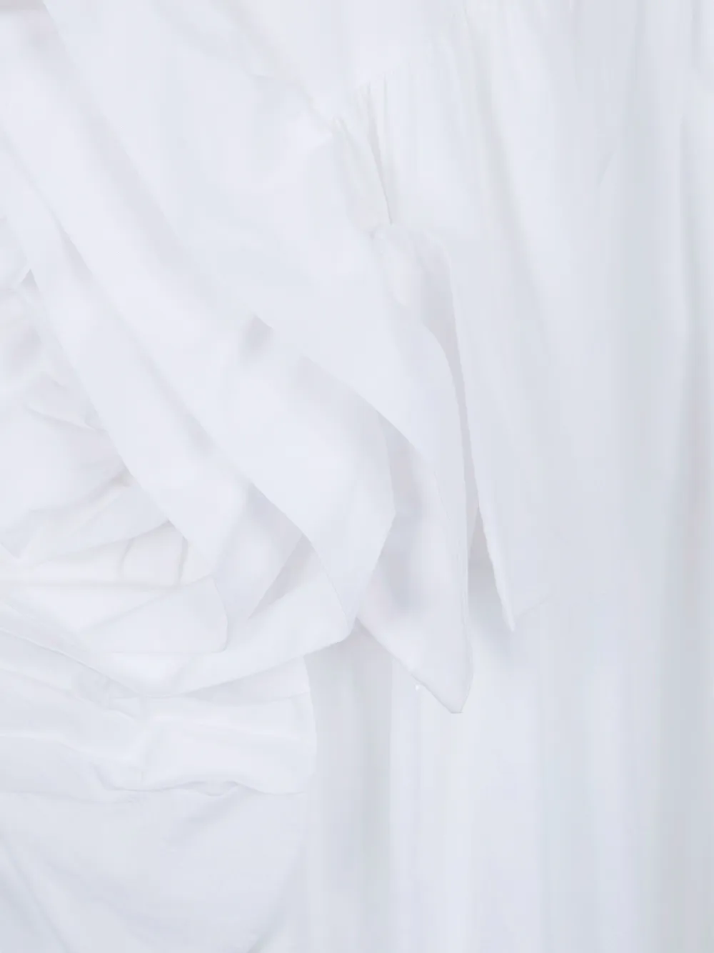 Белая юбка А-силуэта с драпировкой, без рукавов, с круглым вырезом и застежкой-молнией