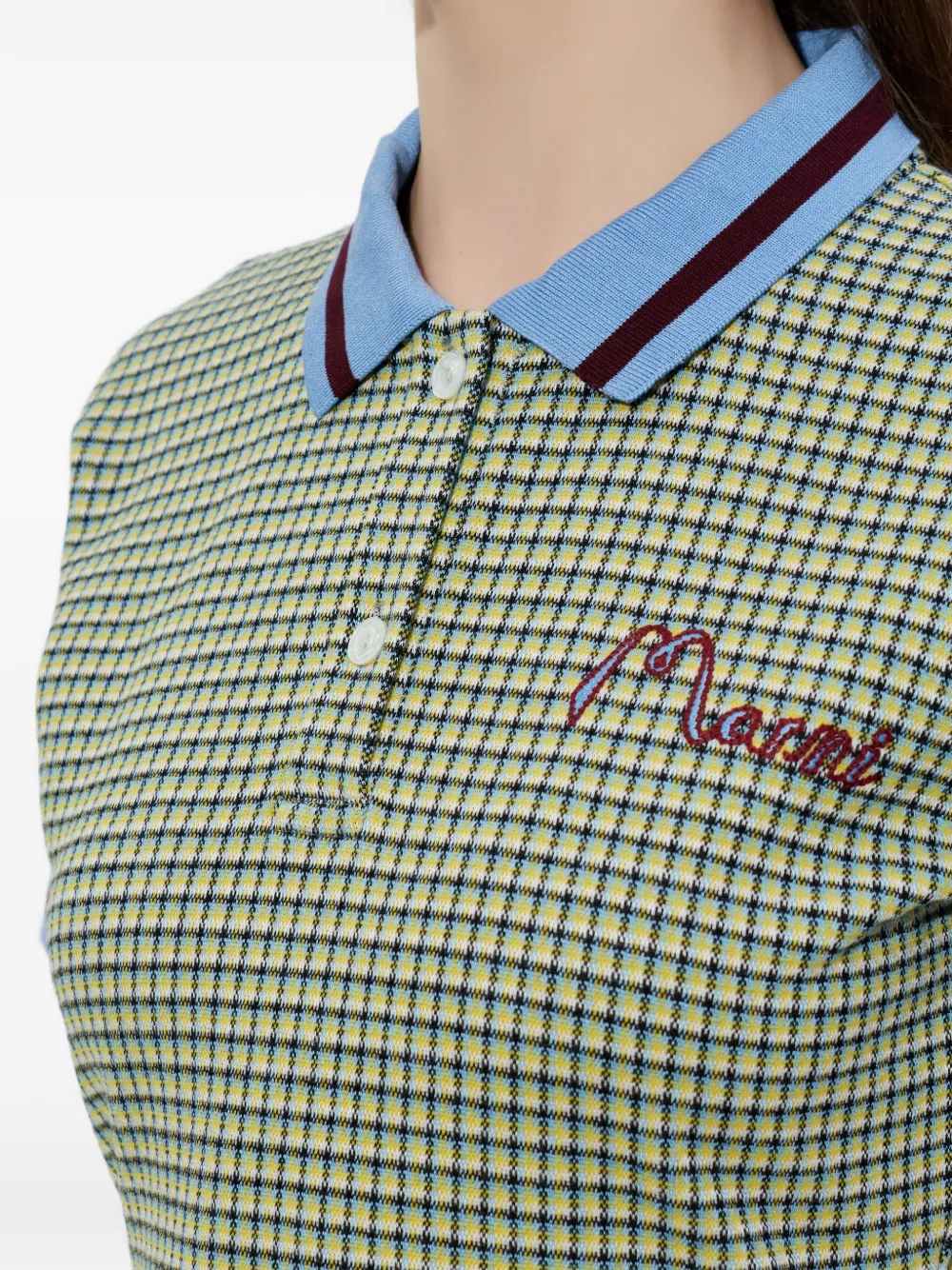 Мини-платье с воротником поло в клетку Marni, зеленый