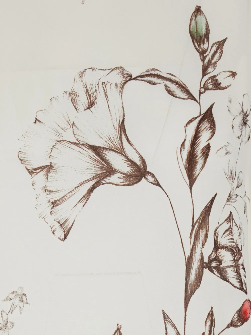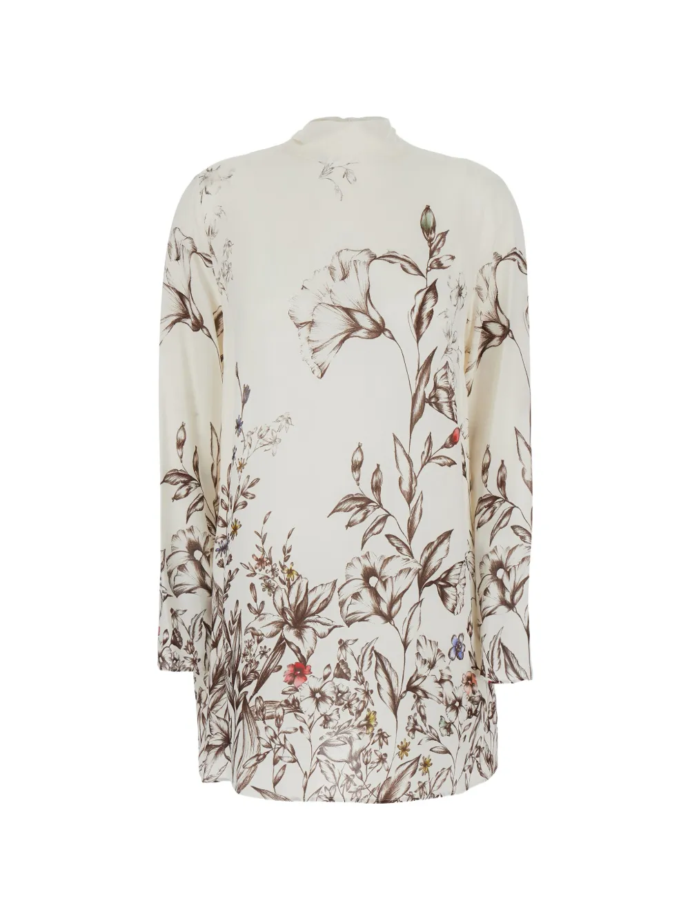 Белый топ с цветочным принтом, высоким воротником, завязкой сзади, длинными рукавами и прямым подолом
