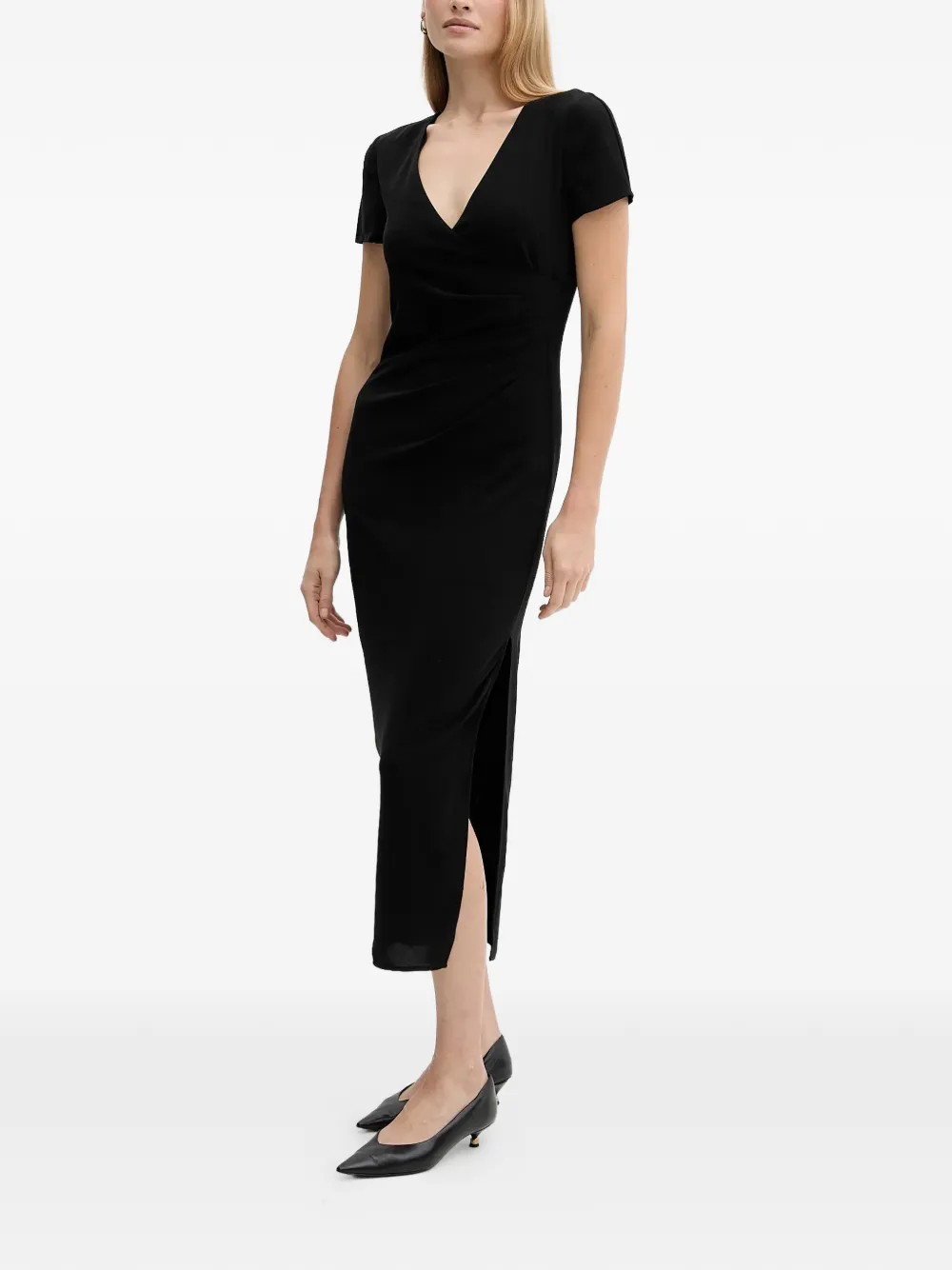 Платье миди с V-образным вырезом Armani Exchange, черный