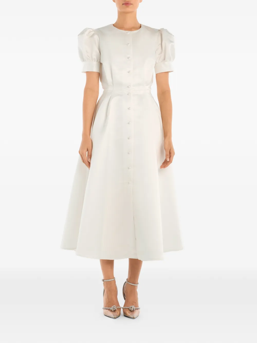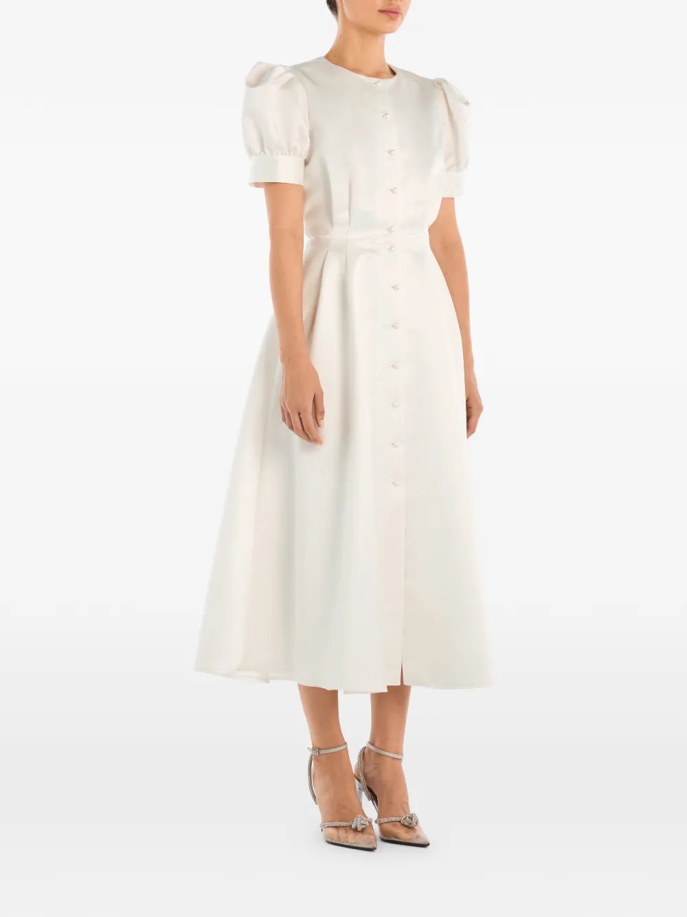 Миди-платье с пуговицами и рукавами-буфами Post Meridiem, белый