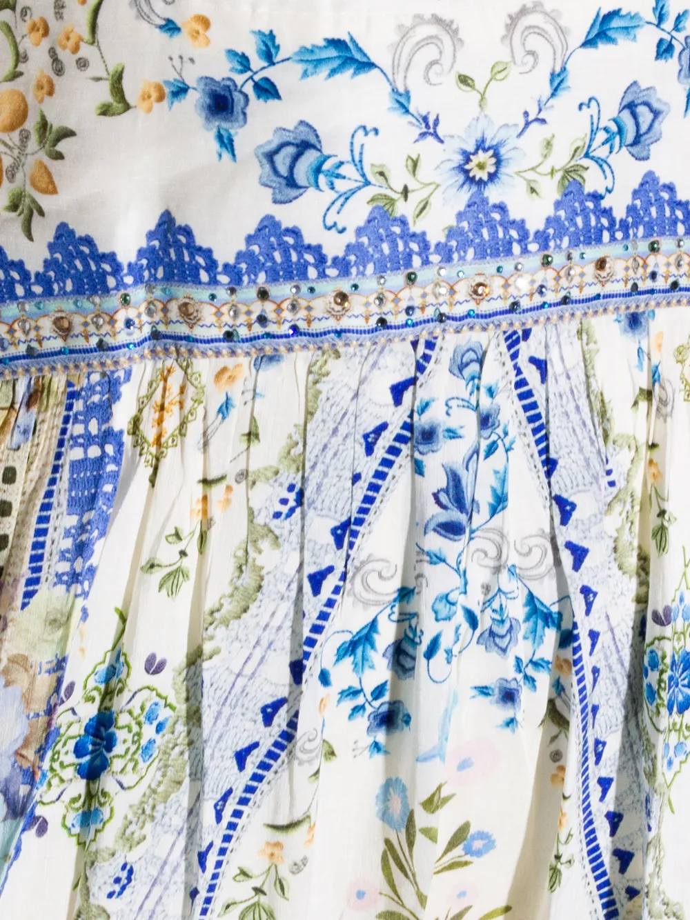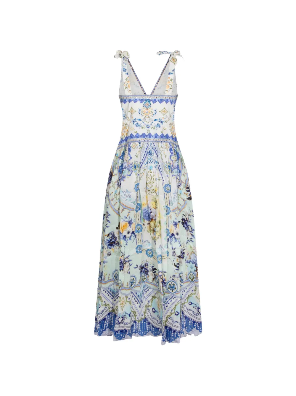 Белый/разноцветный, с цветочным принтом, V-образным вырезом, бусинами, завязками на бретелях