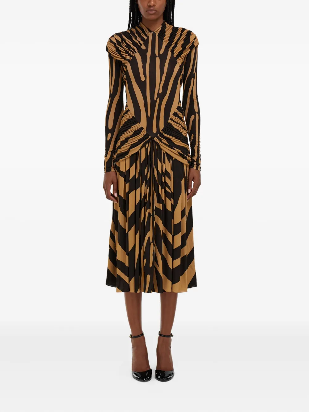 Платье миди из джерси со сборками Ferragamo, коричневый