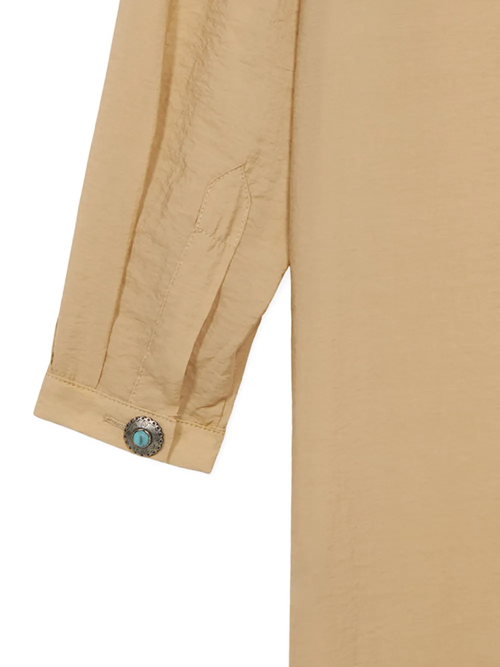 Бежевый, длинные рукава, манжеты на пуговицах, боковые разрезы, застежка на пуговицах спереди