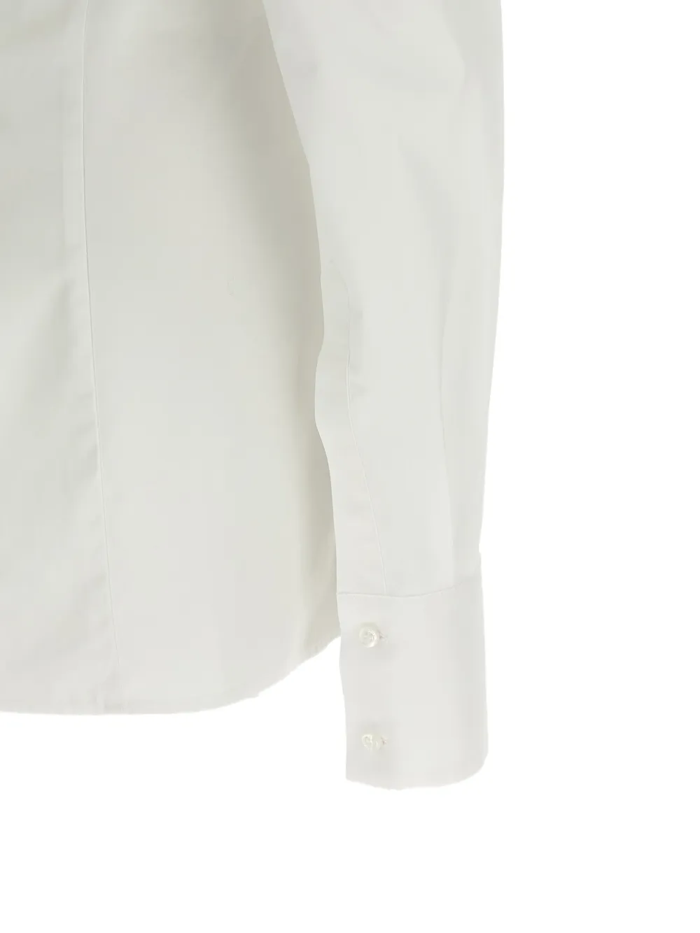 Белая рубашка с аппликацией из страз, застежкой на пуговицы спереди, длинными рукавами и манжетами на пуговицах