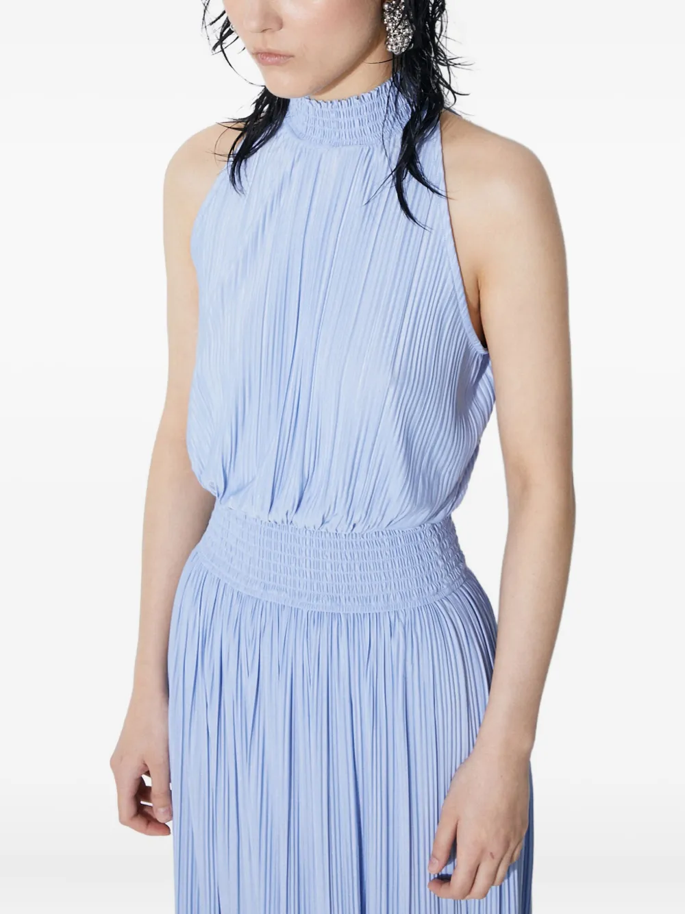 Плиссированное платье миди с высоким воротником Samsoe Samsoe, синий