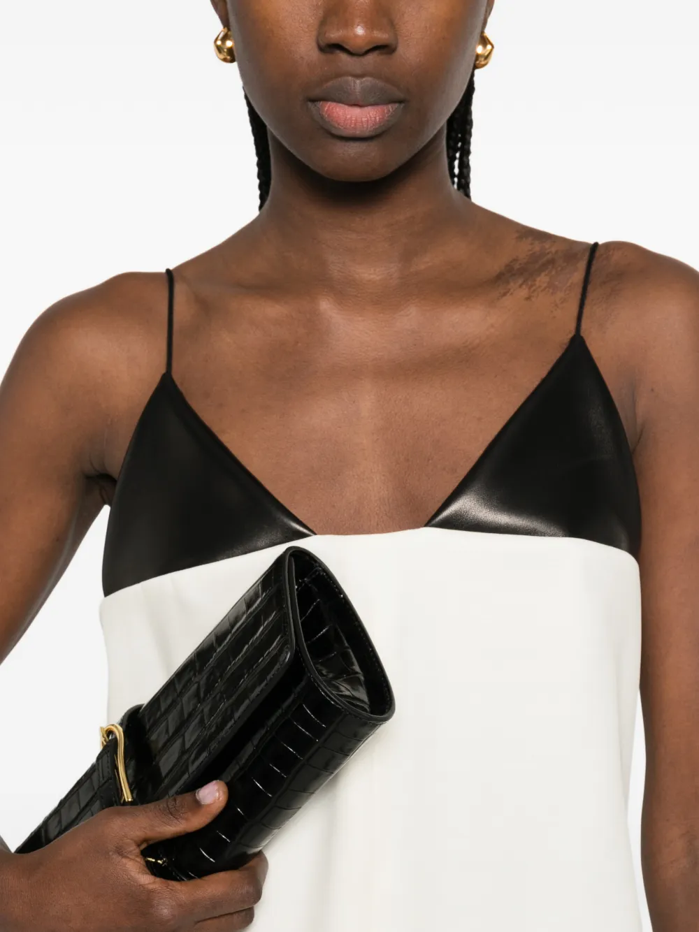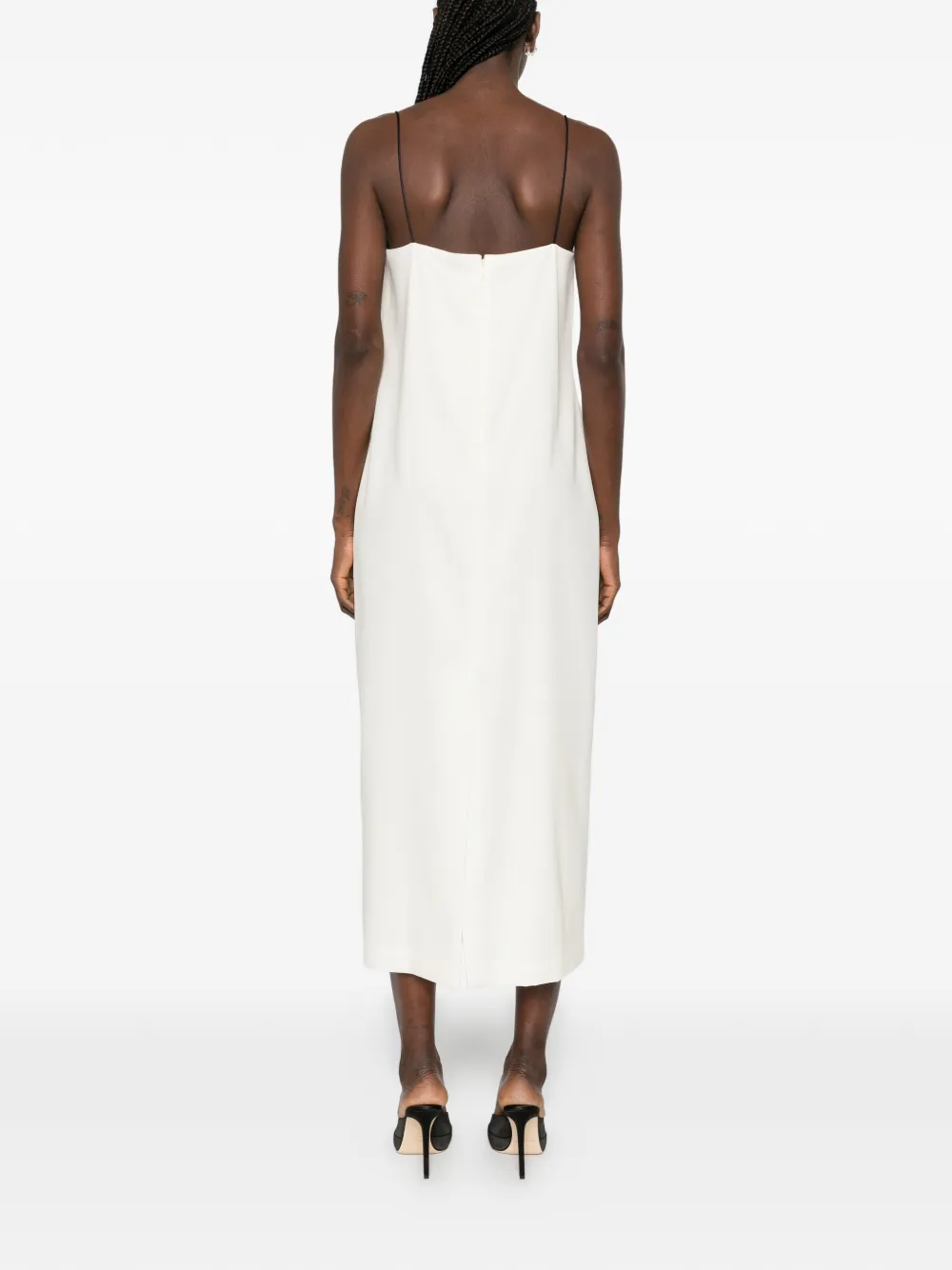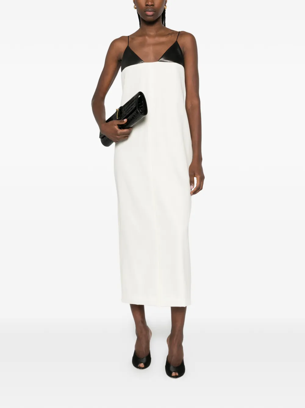 Сливочно-белое платье прямого кроя с контрастными тонкими бретелями
