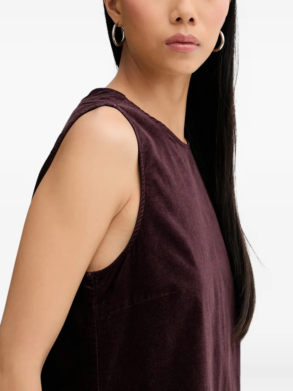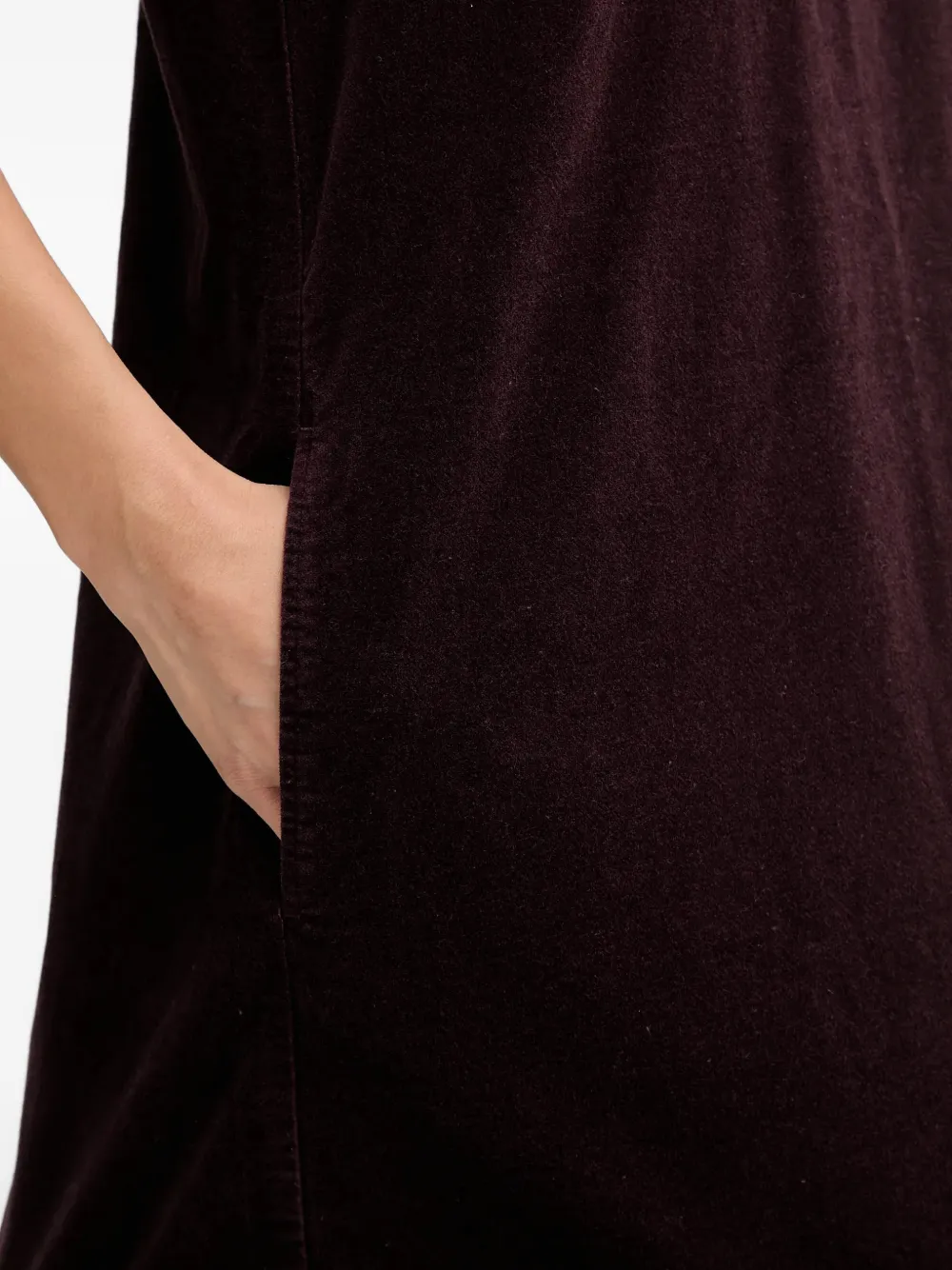Бордовый бархат, фактурная поверхность, круглый вырез горловины, боковые прорезные карманы, застежка на молнию