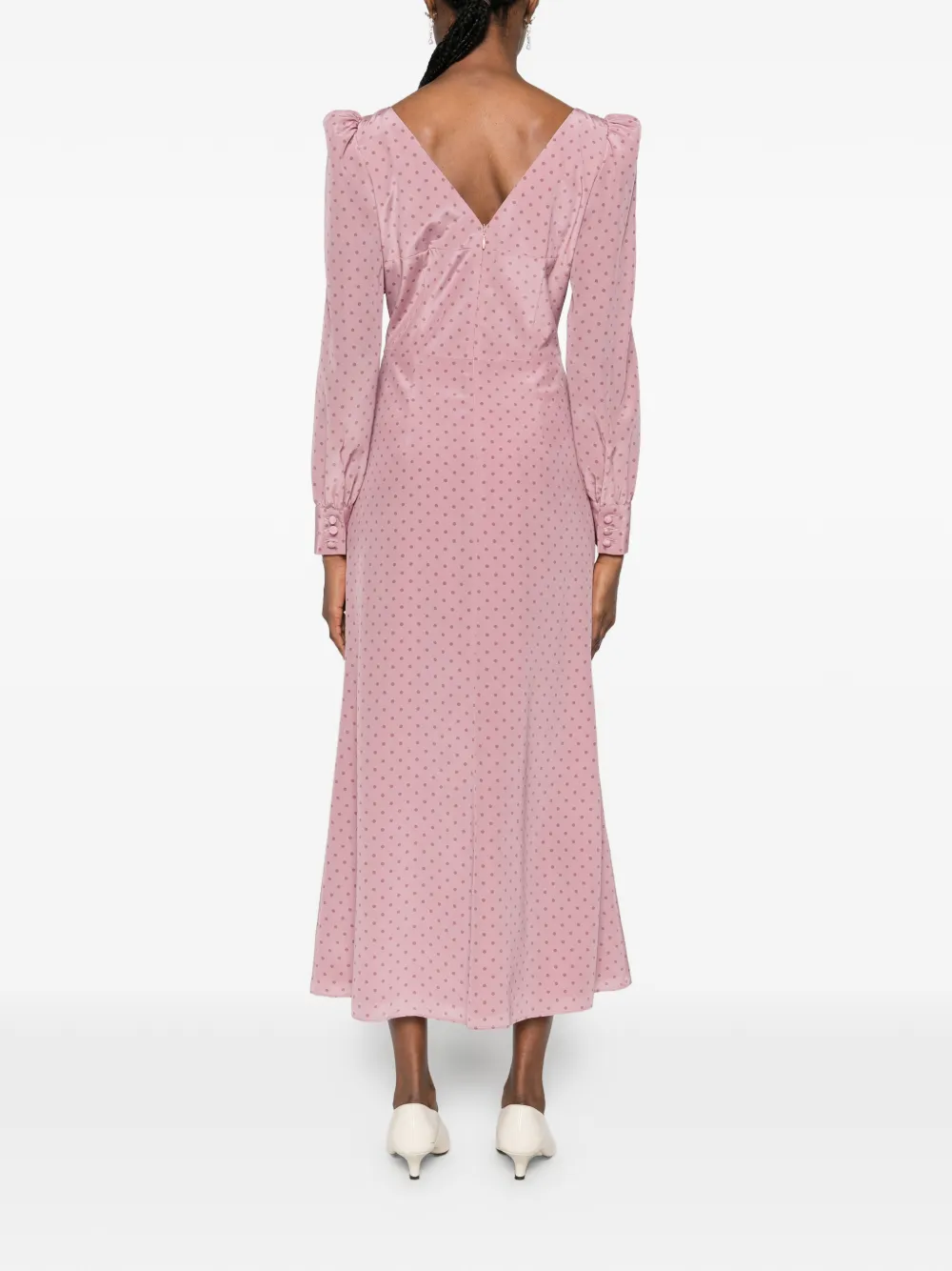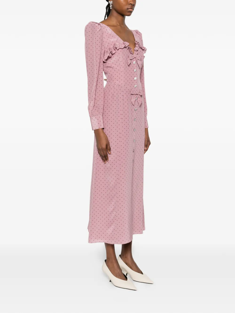 Платье миди в горох с оборками Alessandra Rich, розовый
