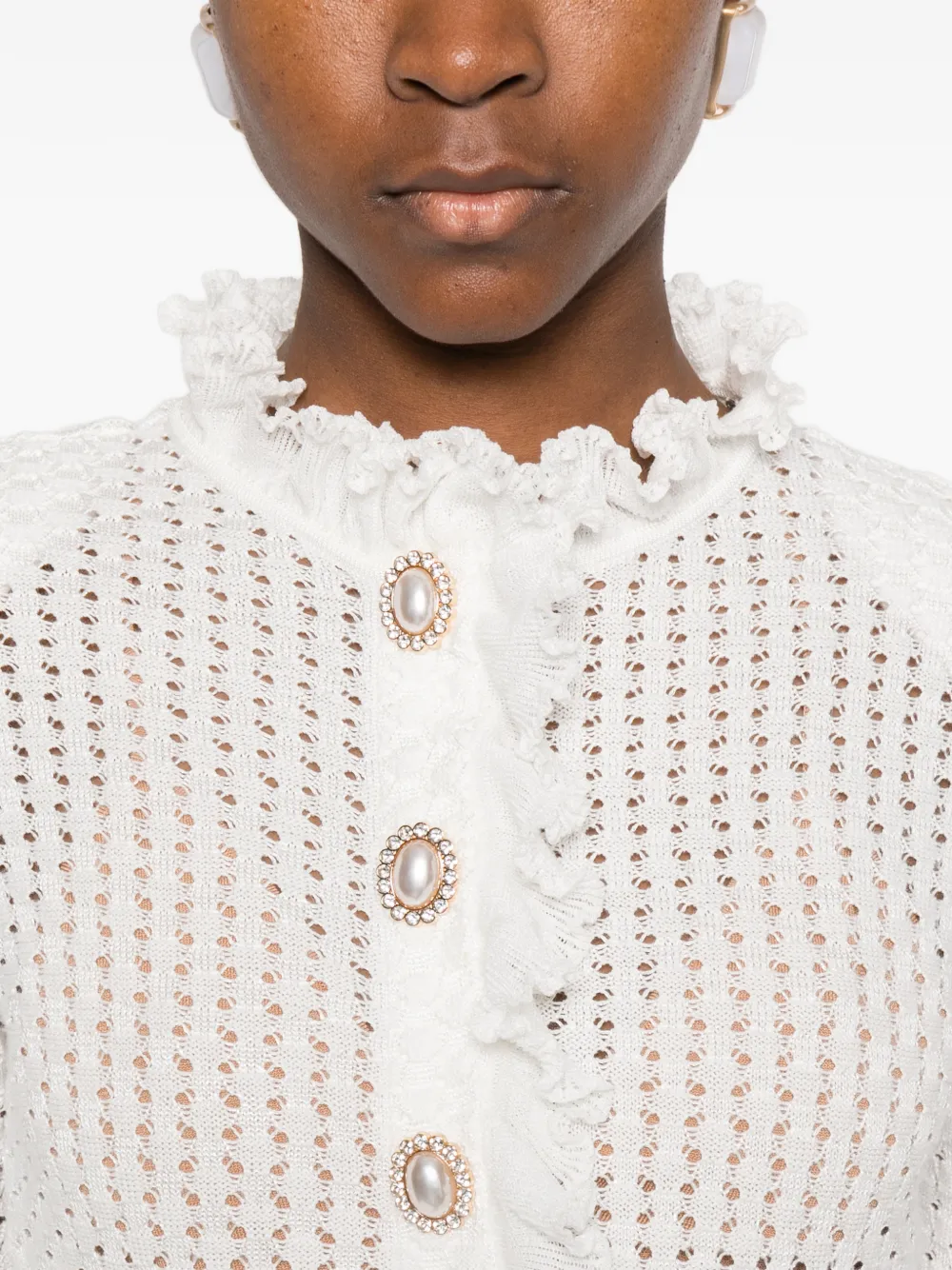 Мини-платье с рюшами и пуговицами Self-Portrait, белый 54 309₽