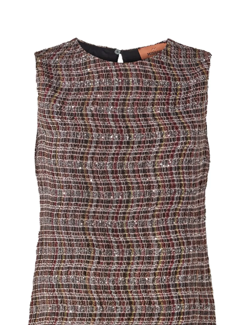 Коричневый и разноцветный, с текстурированной отделкой, без рукавов, с узором, круглый вырез, застежка-молния. Полученный вами товар может незначительно отличаться от изображенного на фотографии. Это связано с мастерством ручной работы, с которым изготавливаются все изделия Missoni.