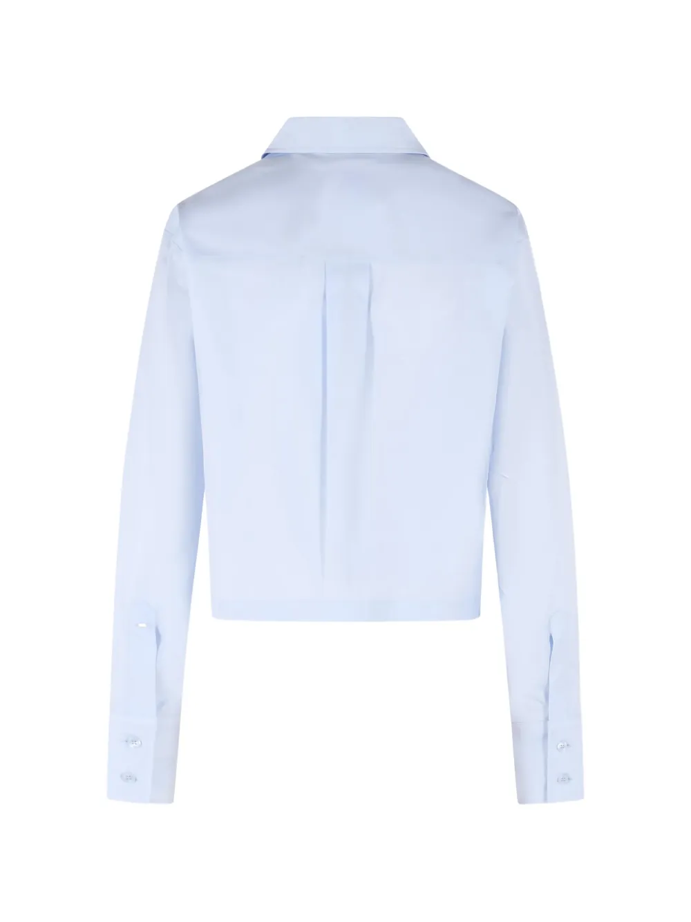 Рубашка светло-голубого цвета с воротником, скрытой застежкой на пуговицах и укороченным кроем