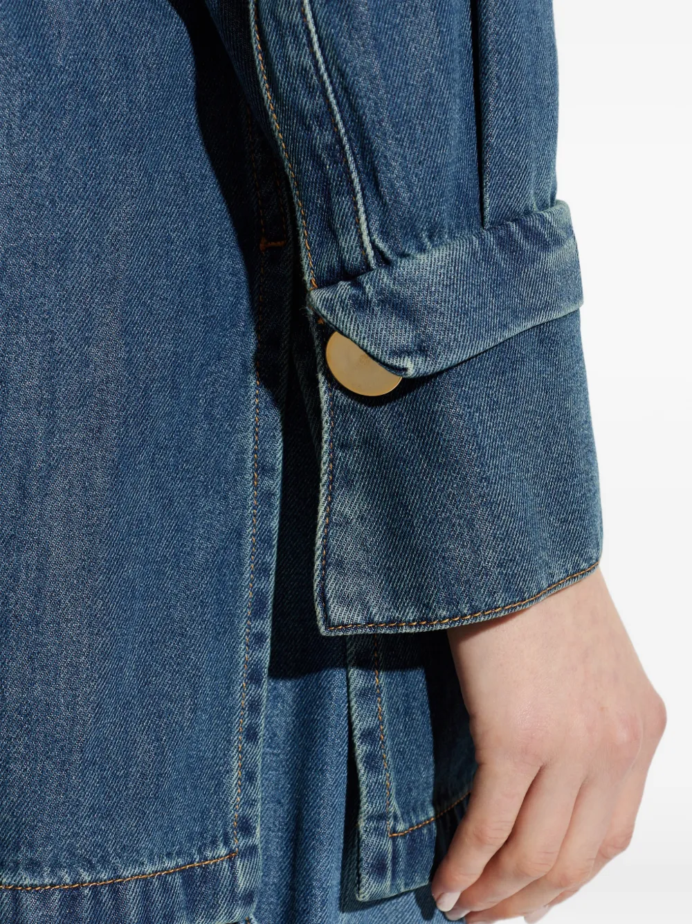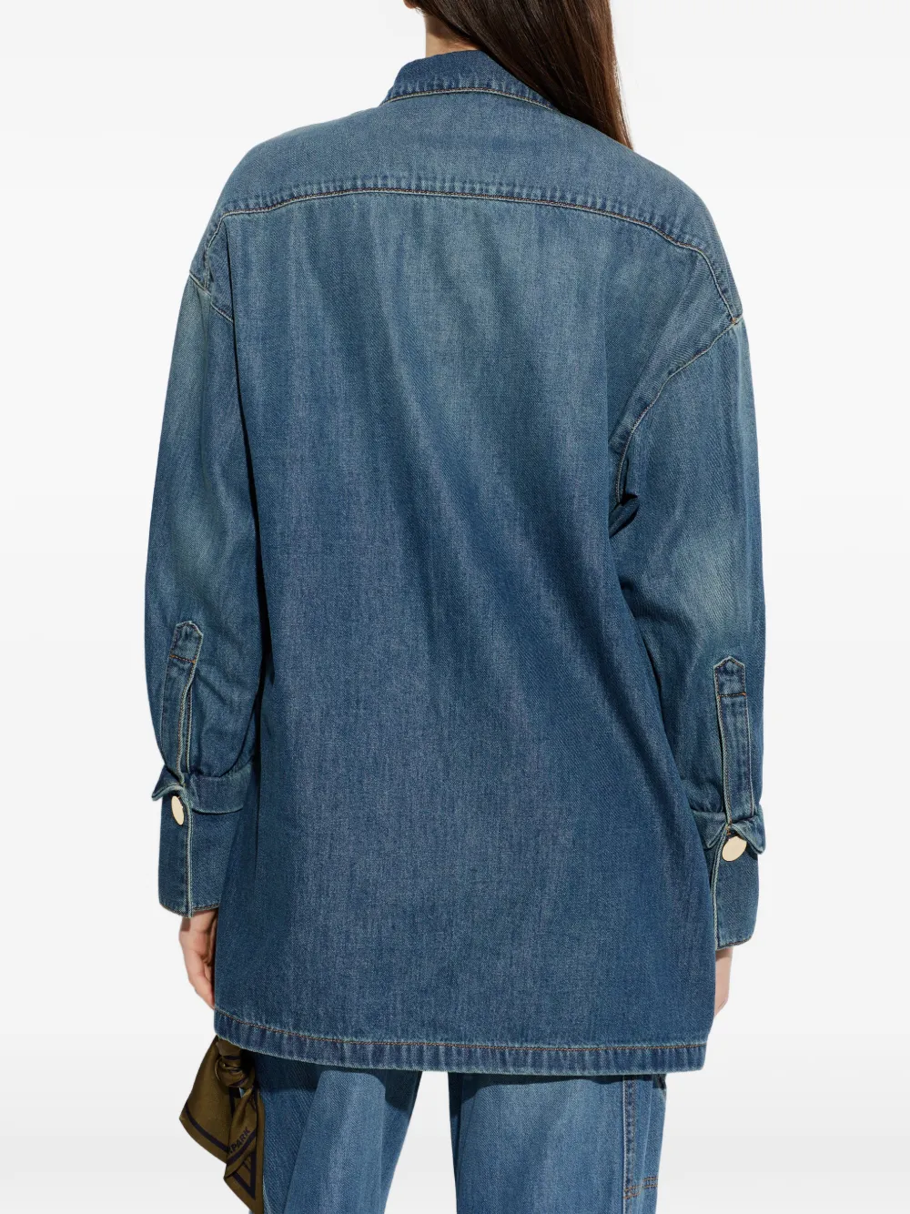 Топ сланцево-синего цвета с застежкой на пуговицы спереди, длинными рукавами и манжетами на пуговицах