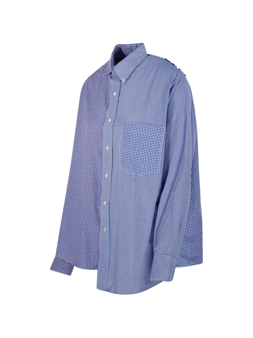 Синий и белый в клетку, нагрудный карман, застежка на пуговицы, присборенная спинка