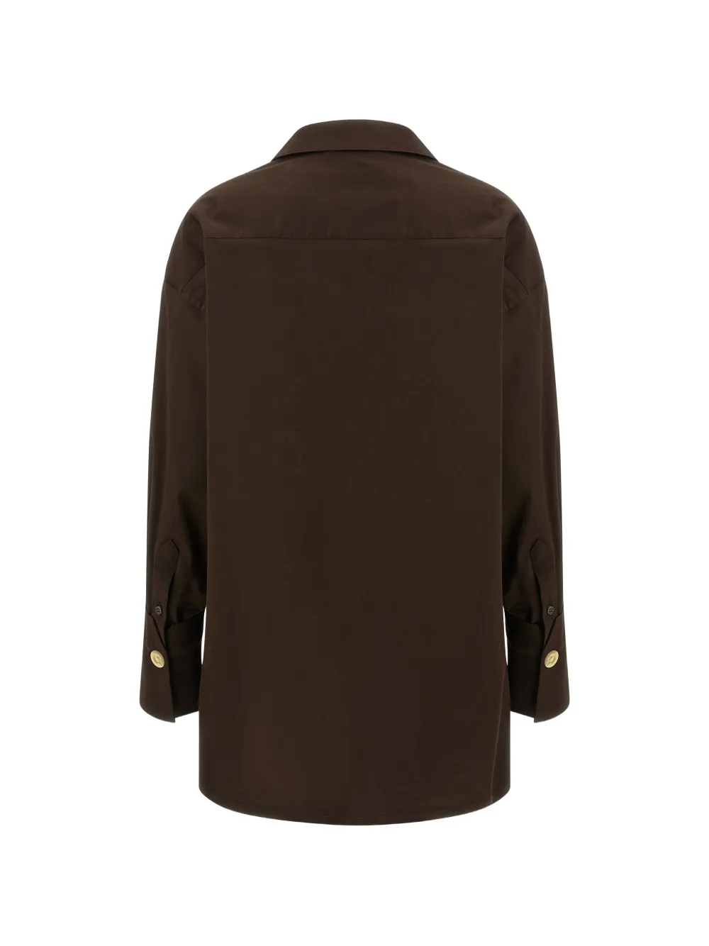 Коричневая поплиновая рубашка с длинными рукавами, застежками на манжетах и боковыми разрезами