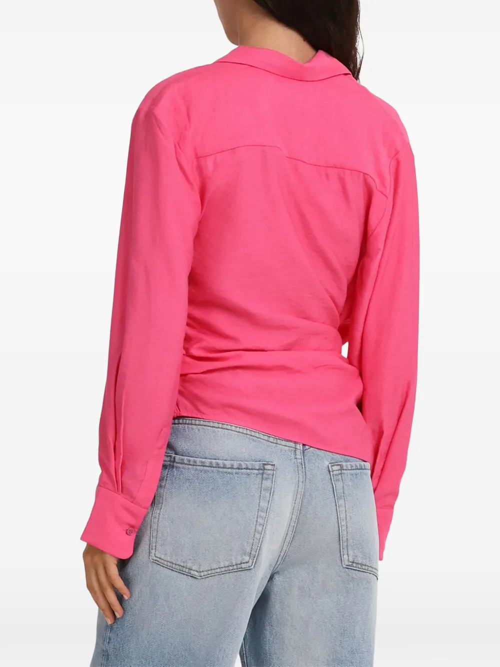 Розовая рубашка с длинными рукавами, воротником-отложным и узлом спереди