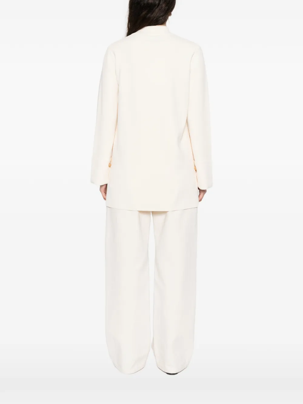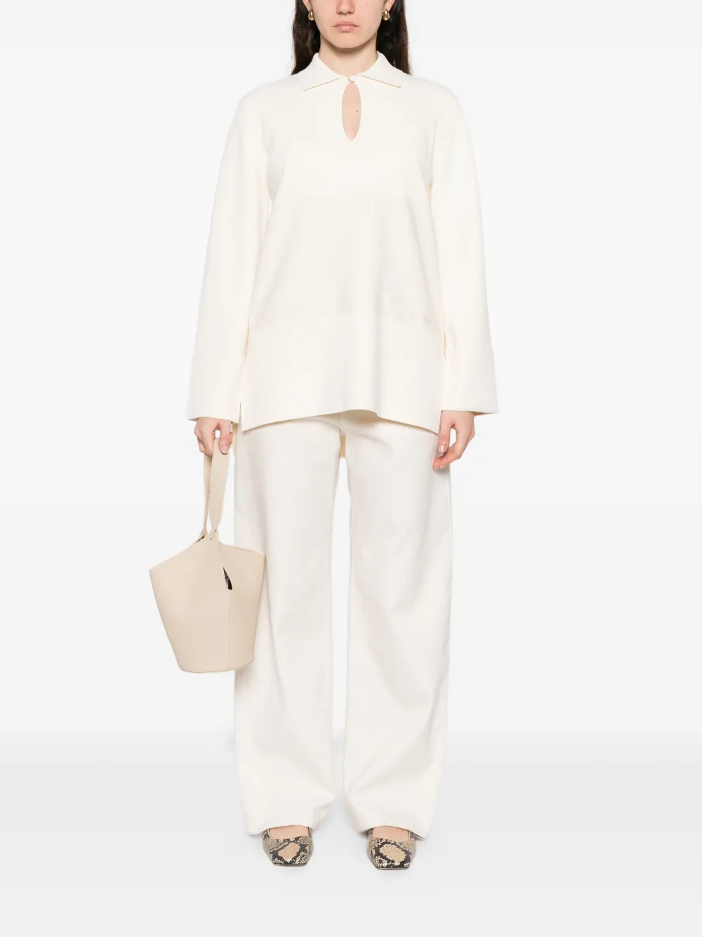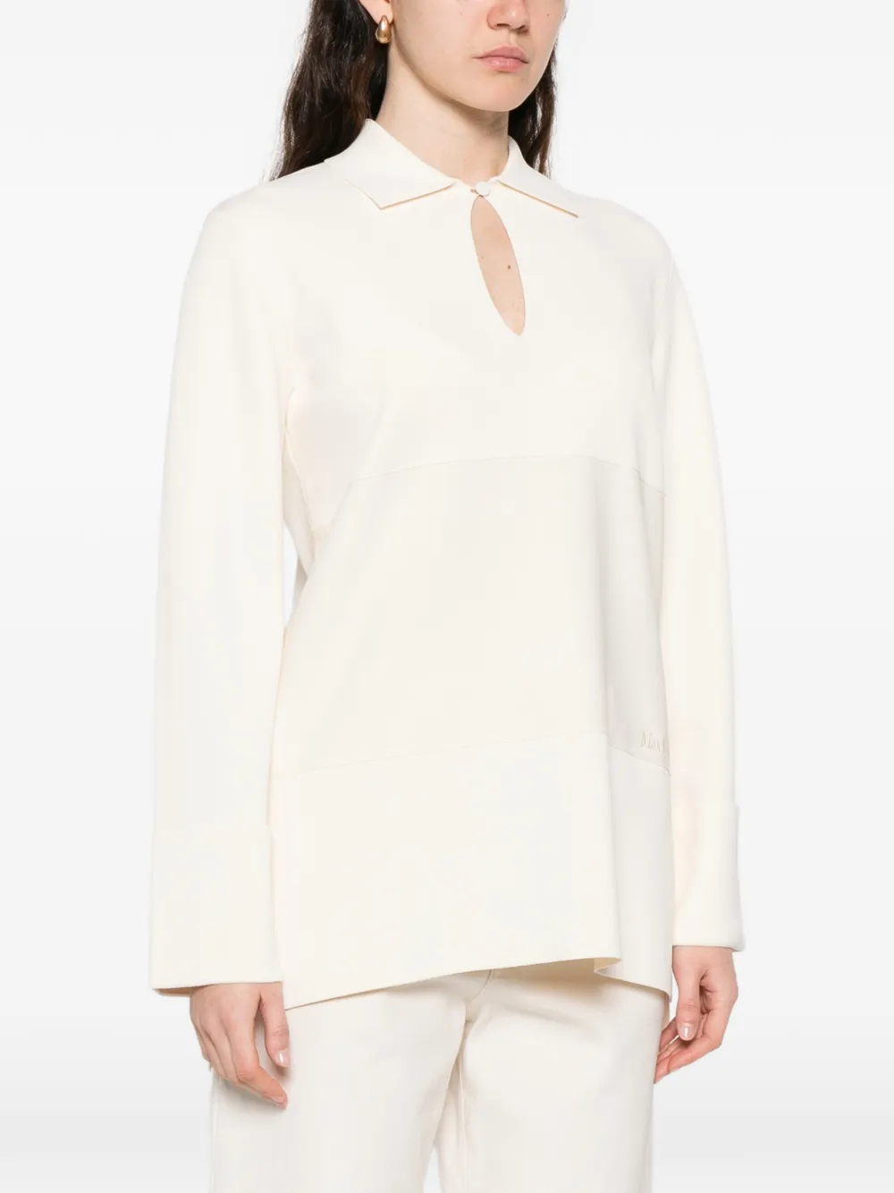 Рубашка цвета слоновой кости с воротником-поло, длинными рукавами и вырезом-каплей