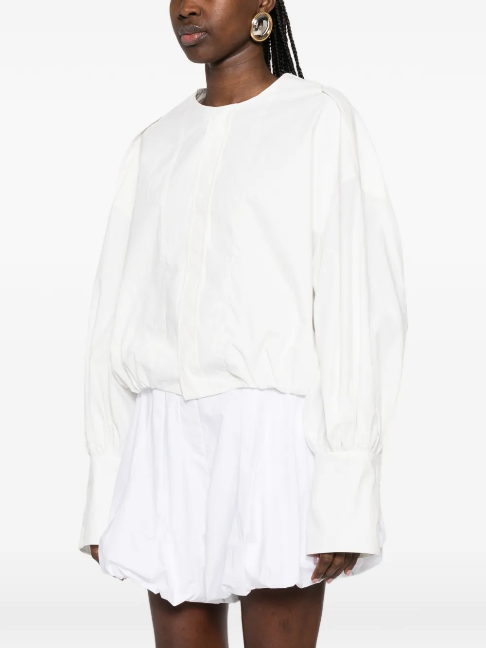 Белый лонгслив с круглым вырезом