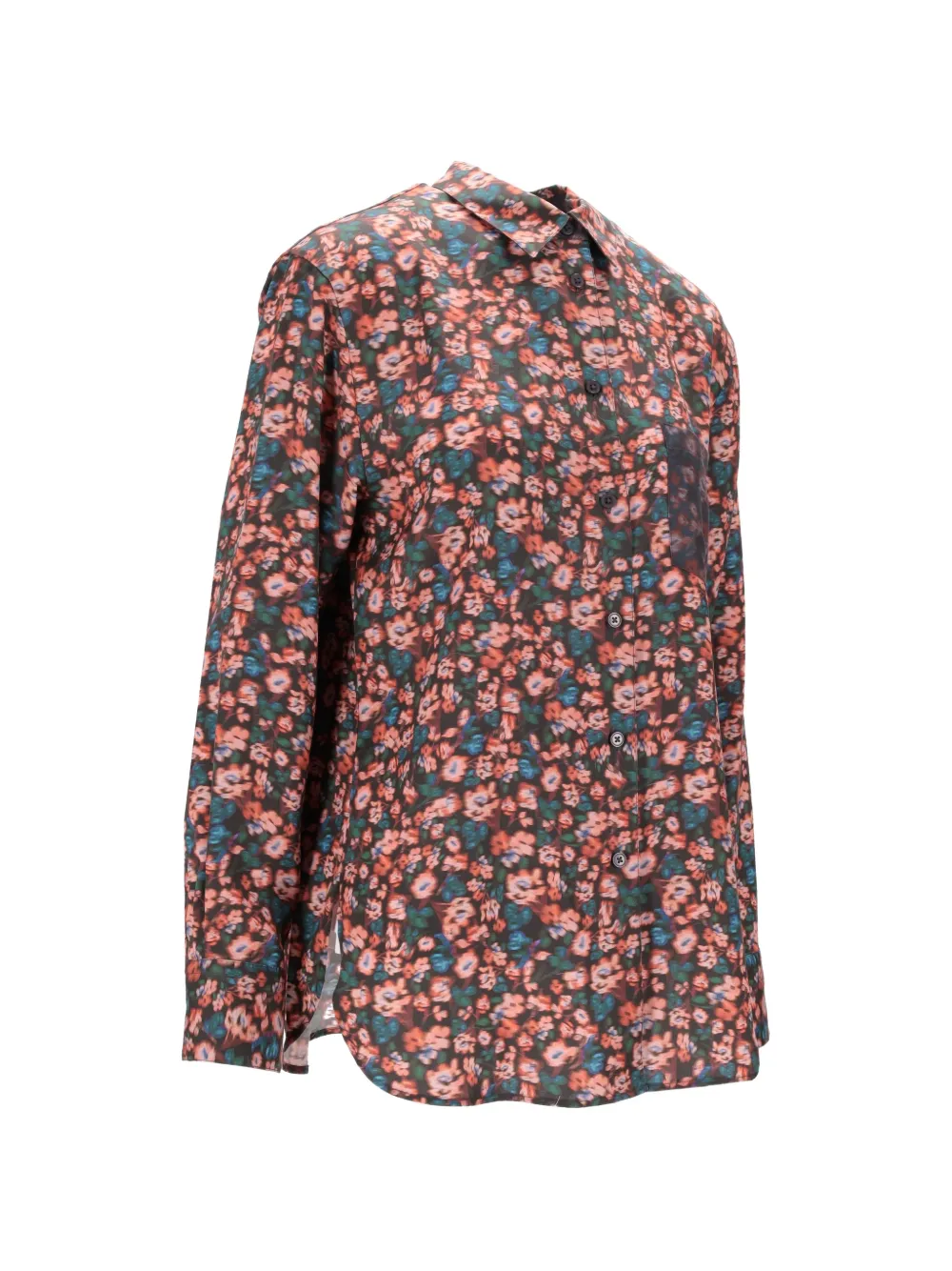 Розовый и разноцветный, с цветочным принтом, нагрудным карманом, застежкой на пуговицы, длинными рукавами