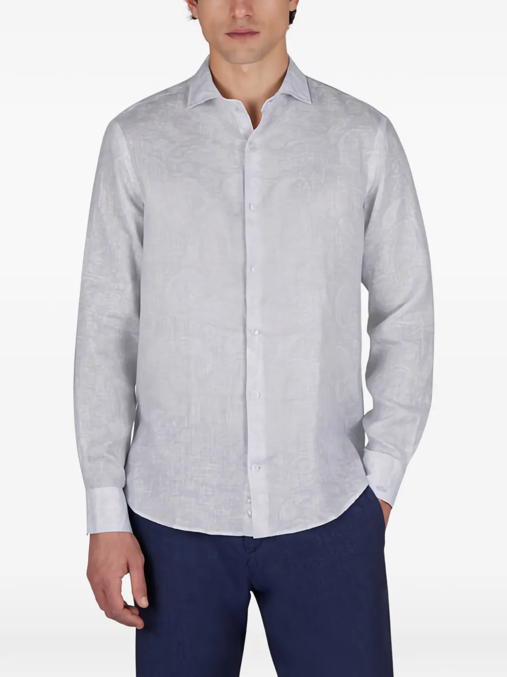 Светло-голубая рубашка с узором "пейсли", застежкой на пуговицы и длинными рукавами