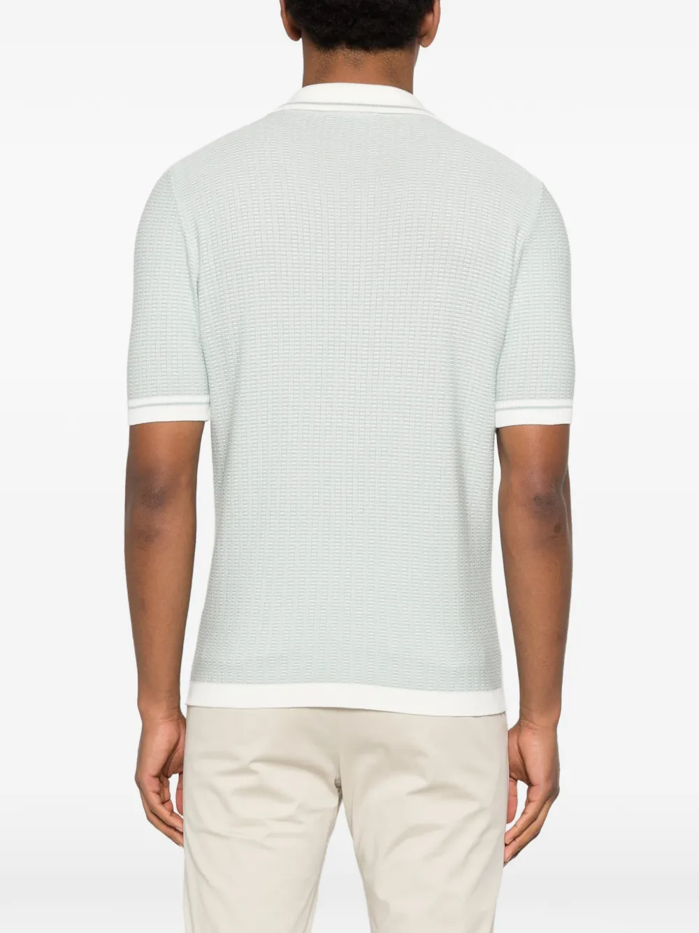 Зеленый/белый, мелкая вязка, ребристая отделка, застежка на пуговицы, отложной воротник, короткие рукава