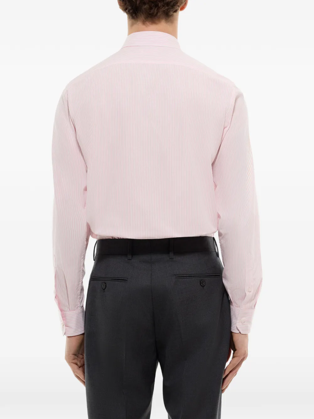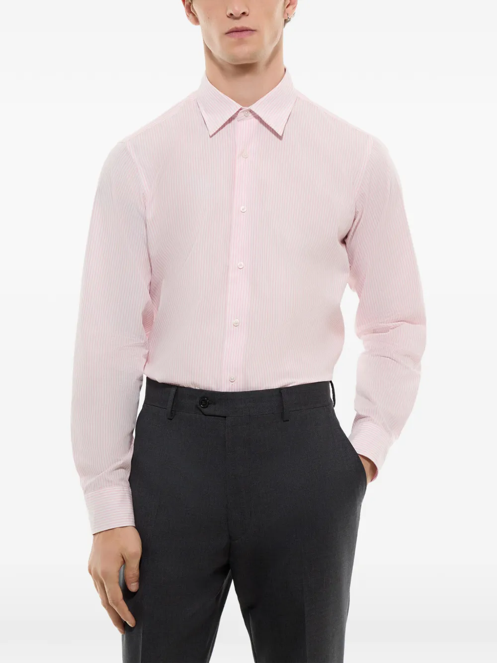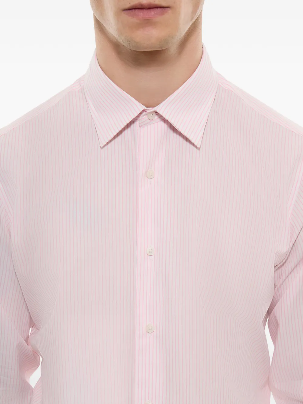 Розовая хлопковая рубашка в полоску с застежкой на пуговицы спереди, длинными рукавами и манжетами на пуговицах
