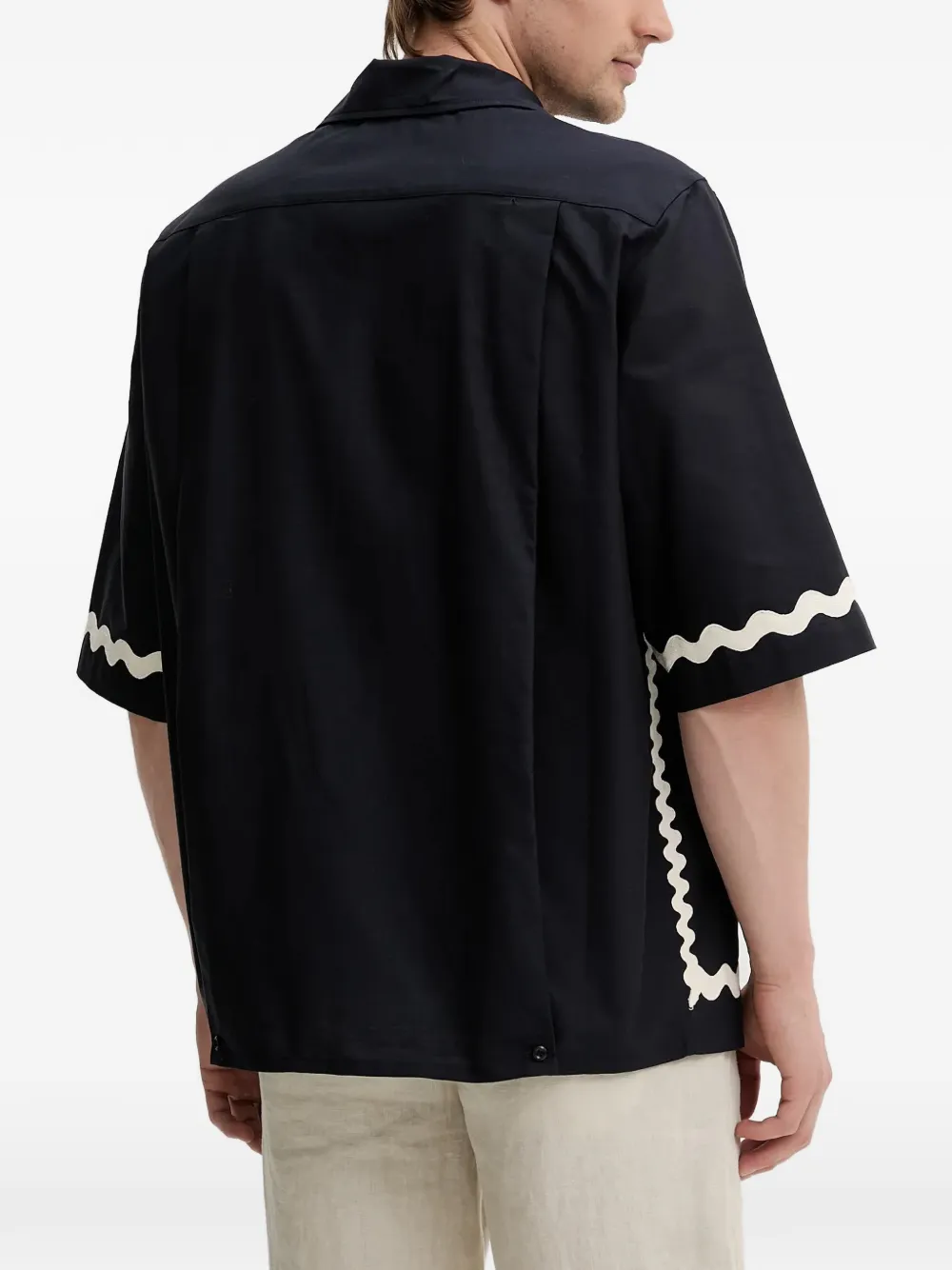 Темно-синяя футболка с волнистой отделкой, нагрудным карманом, вышитым логотипом и короткими рукавами
