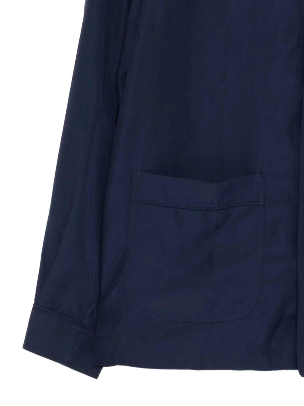 Темно-синий, застежка на пуговицы спереди, три накладных кармана спереди, манжеты на пуговицах